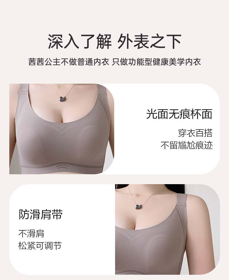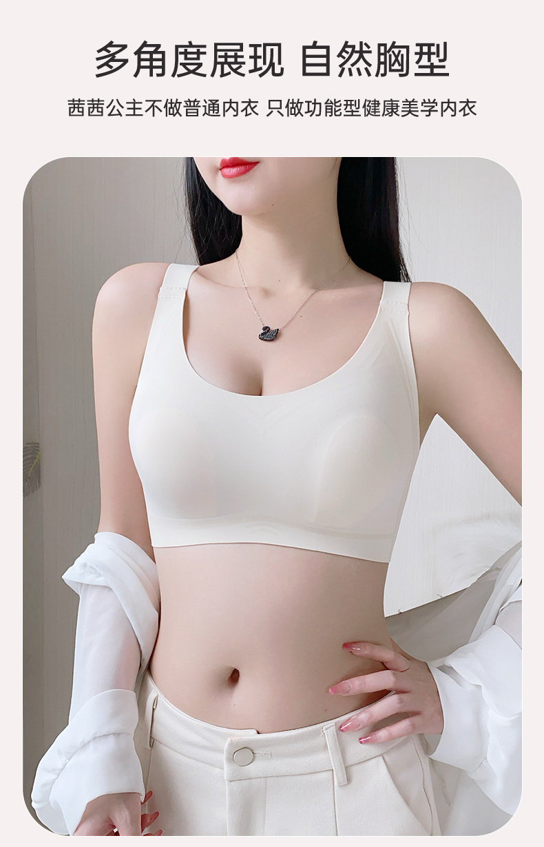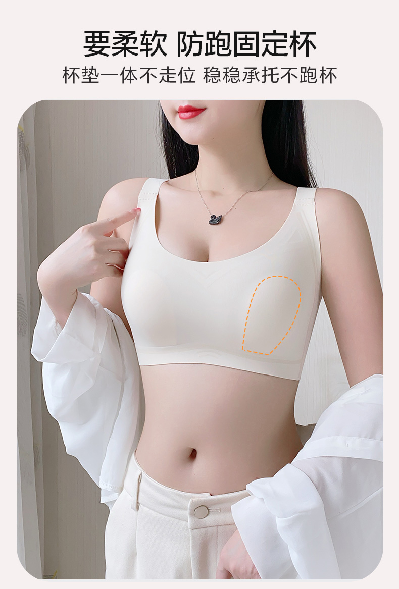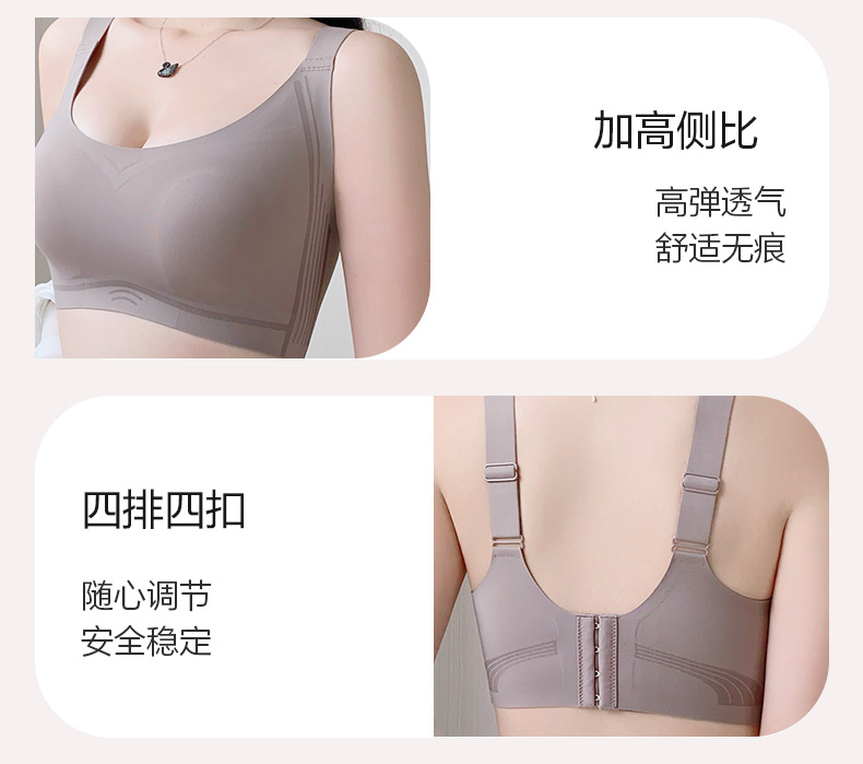 U型美背无感文胸 大胸显小 无痕光面兔耳朵杯 高侧比无钢圈 薄款贴身透气 全罩杯稳定承托 收副乳