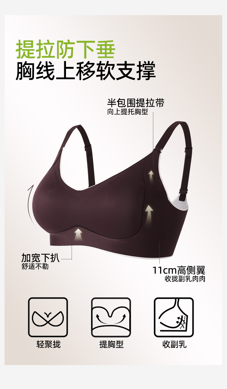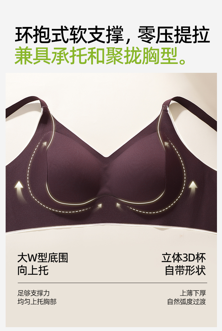 熳洁儿 裸感舒适无痕反重力提拉内衣水滴杯小胸聚拢文胸25761513