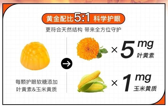 黄素+1mg玉米黄质,5:1的专业护眼配比