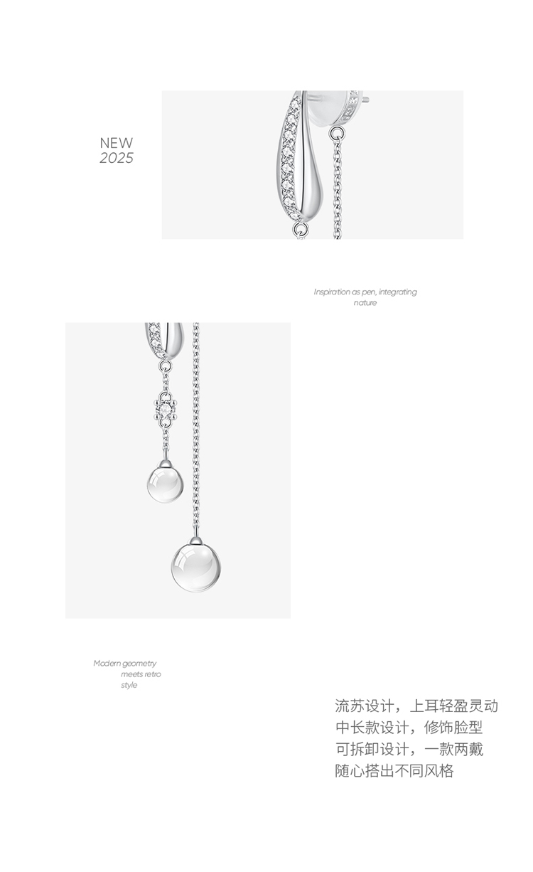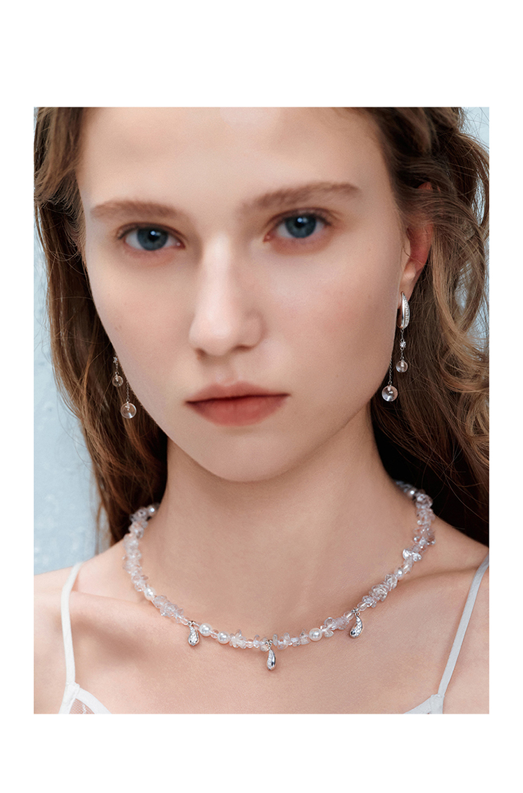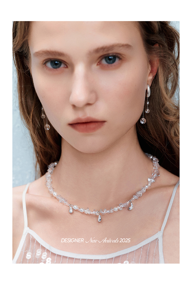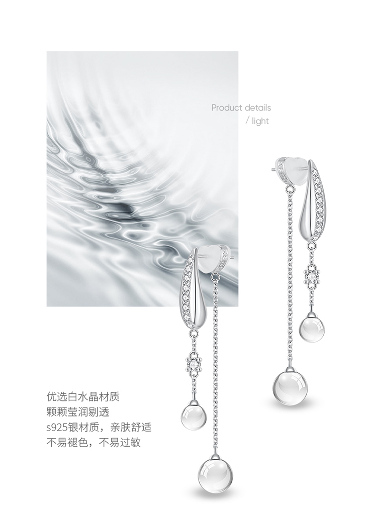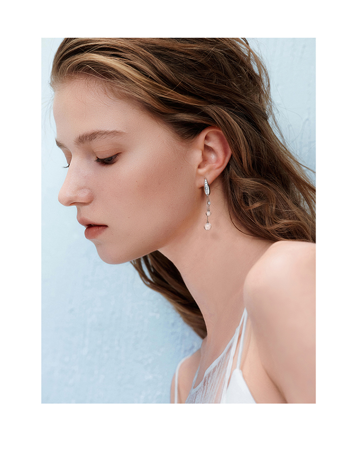 ZEGL真柳设计师时雨系列流苏耳环女轻奢高级水滴耳钉天然水晶耳饰