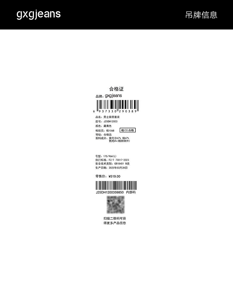 gxg.jeans男装 多色休闲莫代尔棉情侣家居服睡衣套装 25年夏热卖