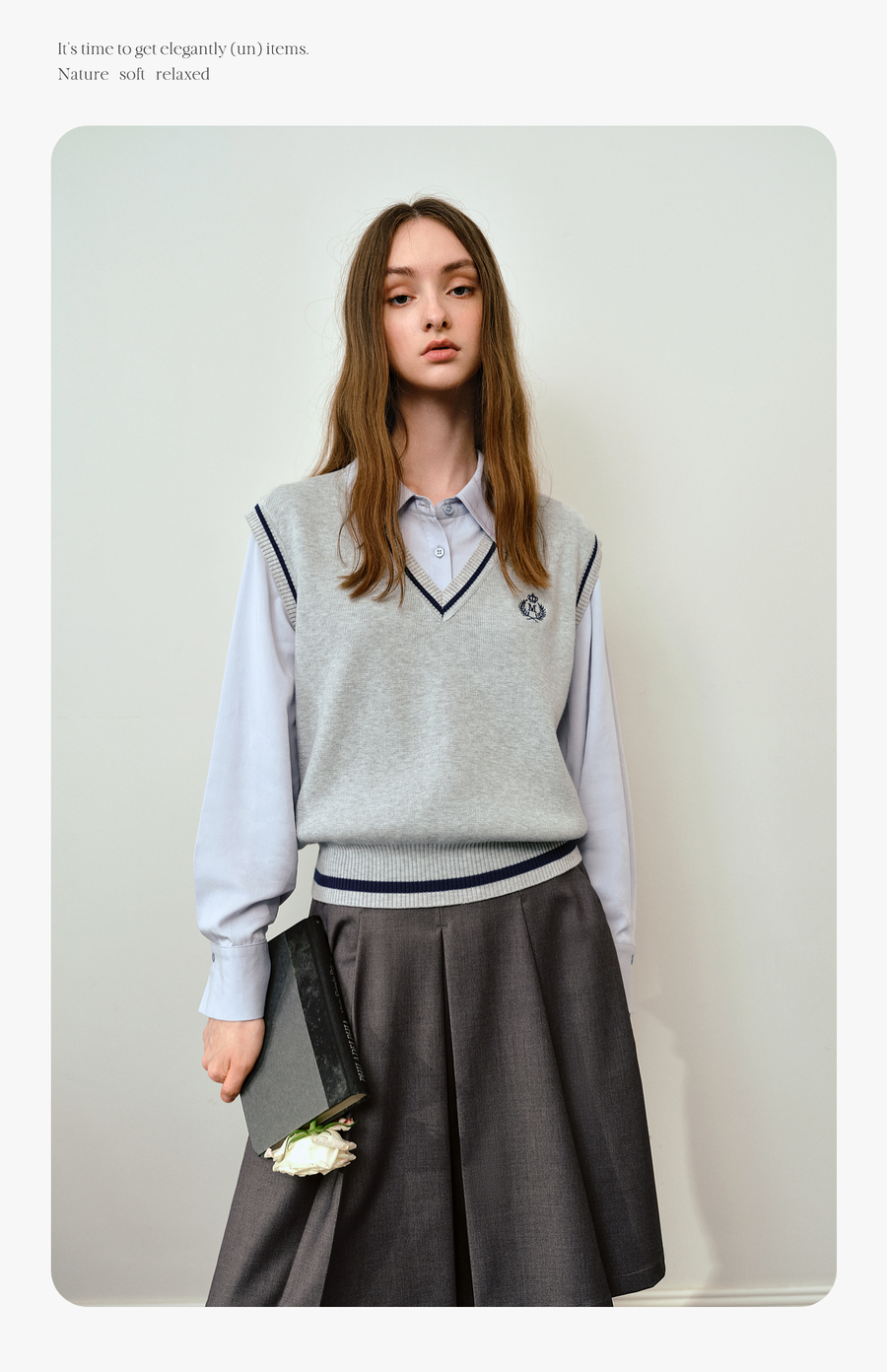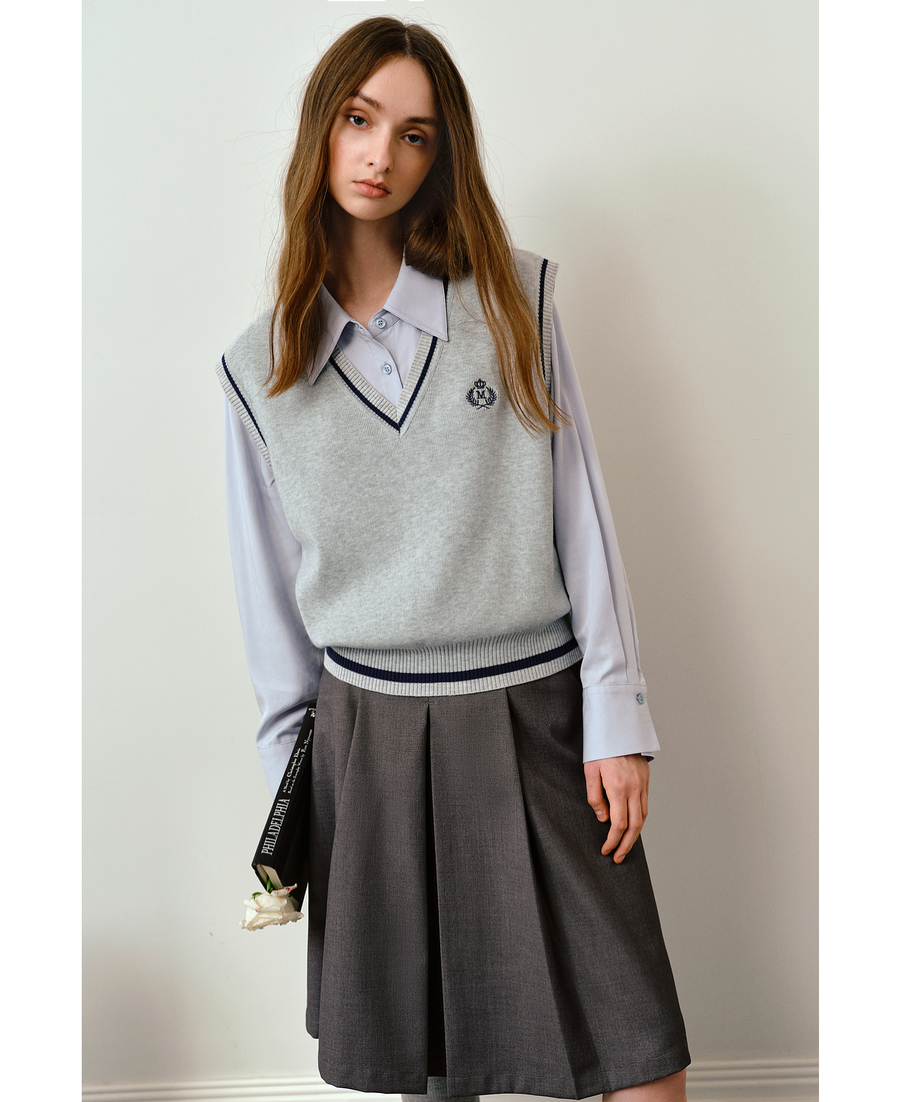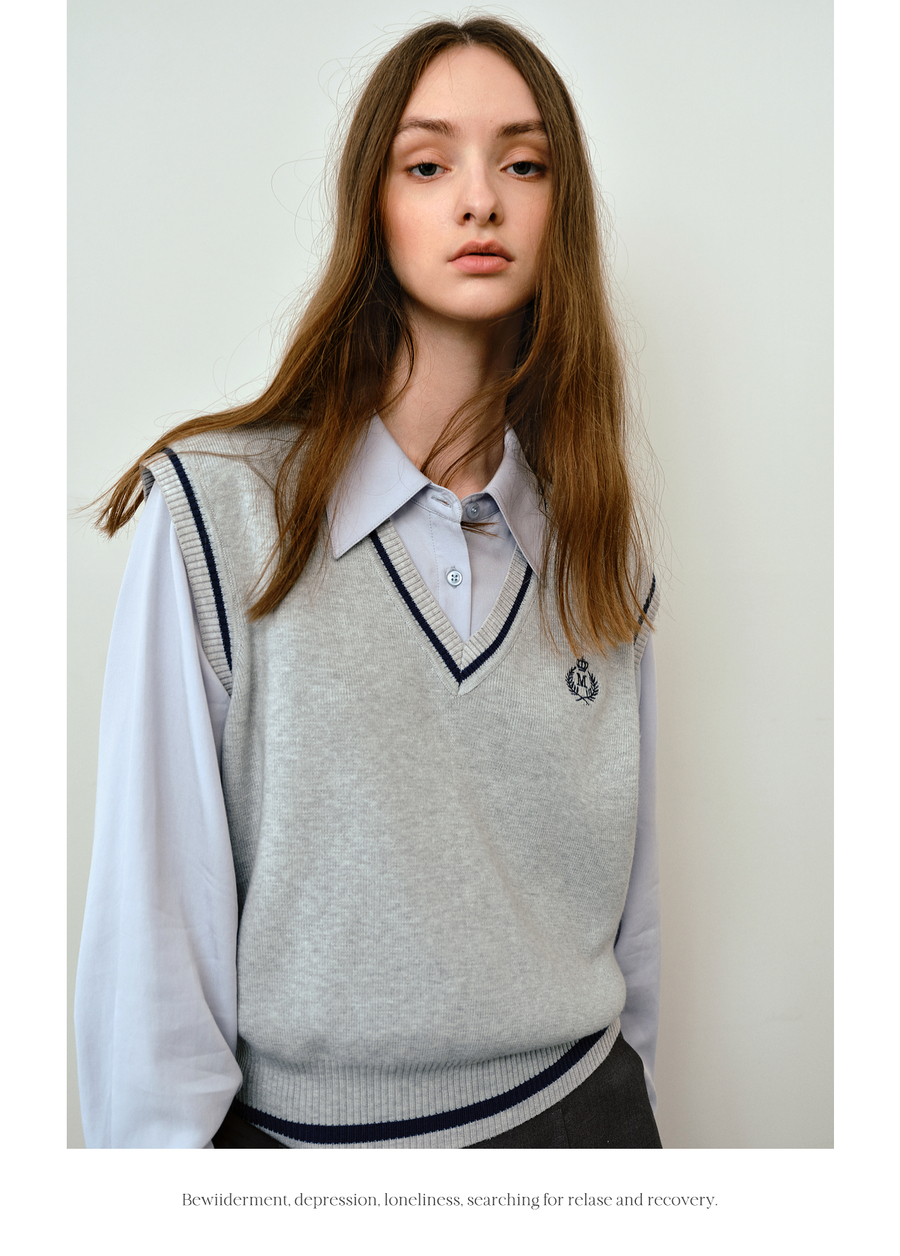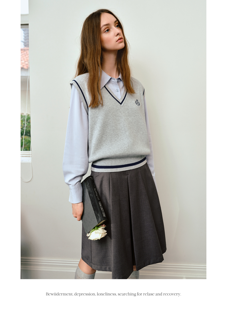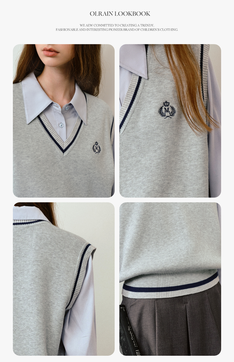 OLrain欧芮儿法式毛织V领女2025秋季新款休闲学院风外搭马甲上衣