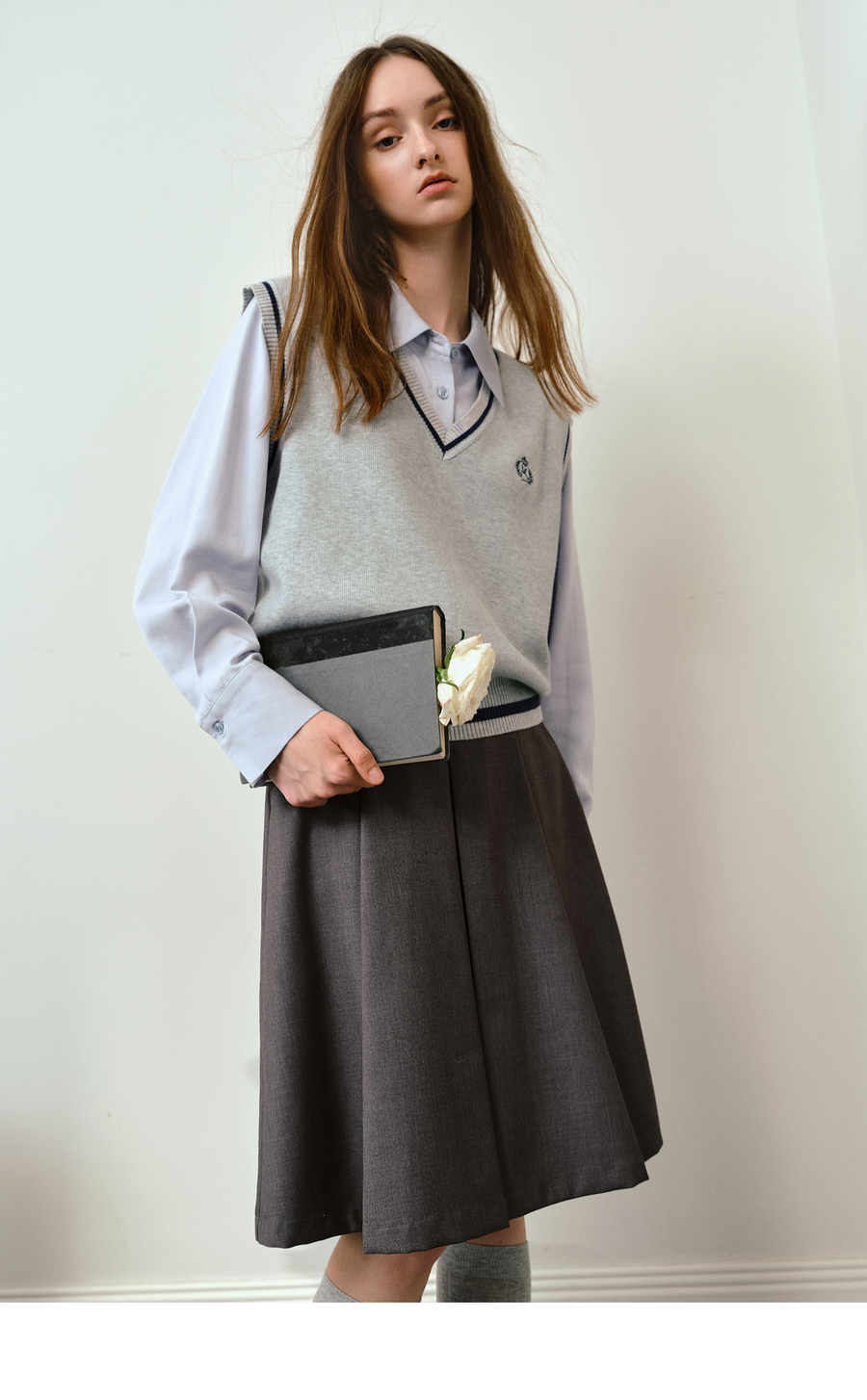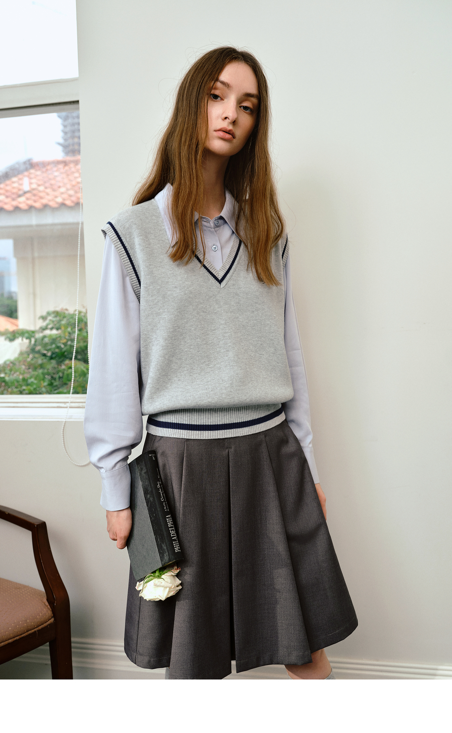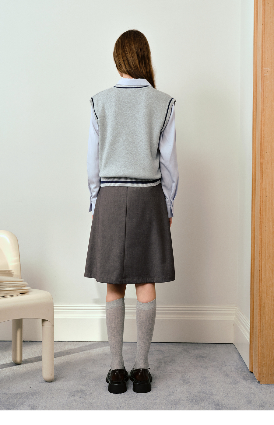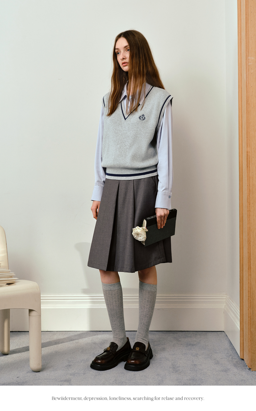OLrain欧芮儿法式毛织V领女2025秋季新款休闲学院风外搭马甲上衣