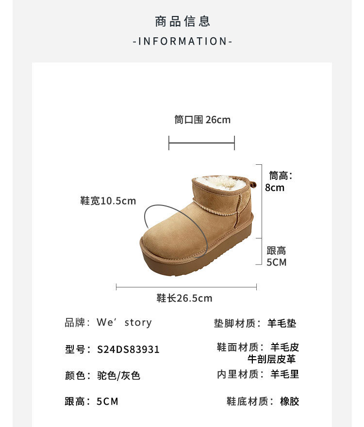 westory2024年春季新款皮毛一体毛毛内里超保暖雪地靴短靴S24DS83931