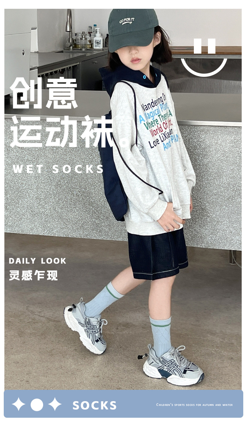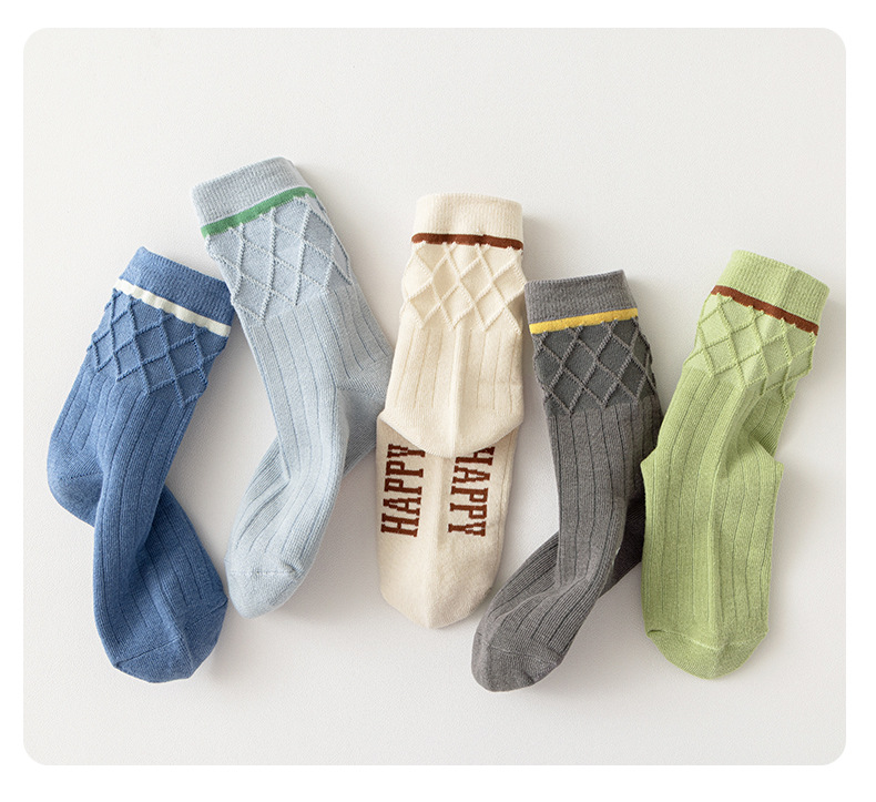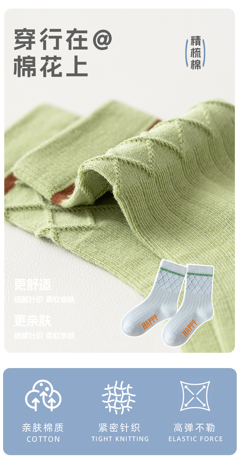 【儿童袜子5双装 透气棉袜】秋季男女童精梳棉 字母无骨潮袜中大童运动中筒