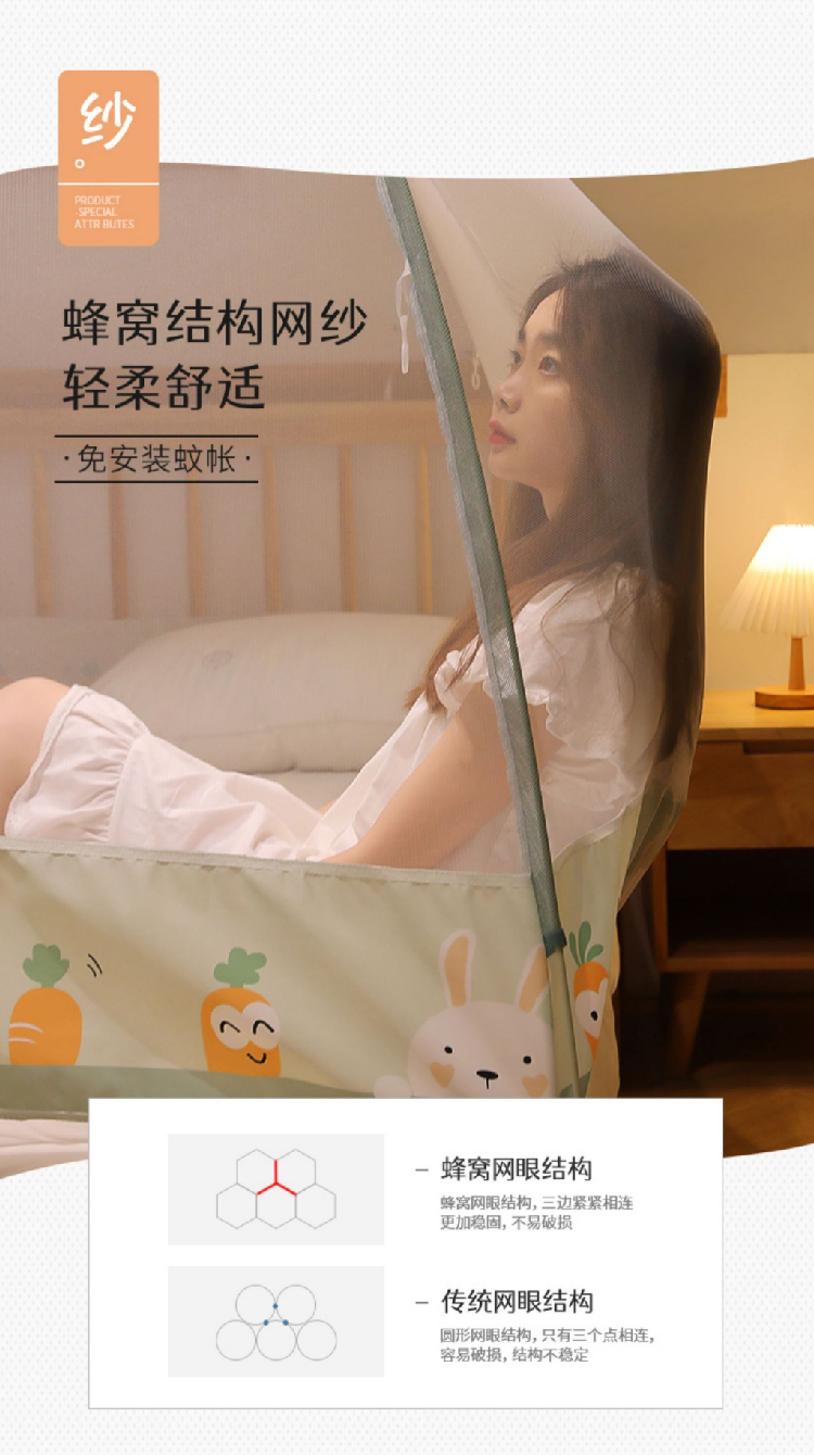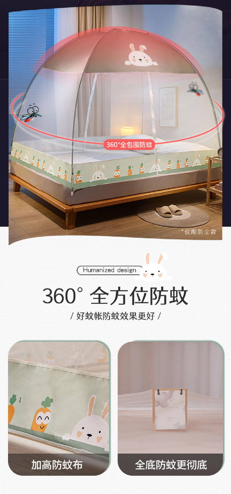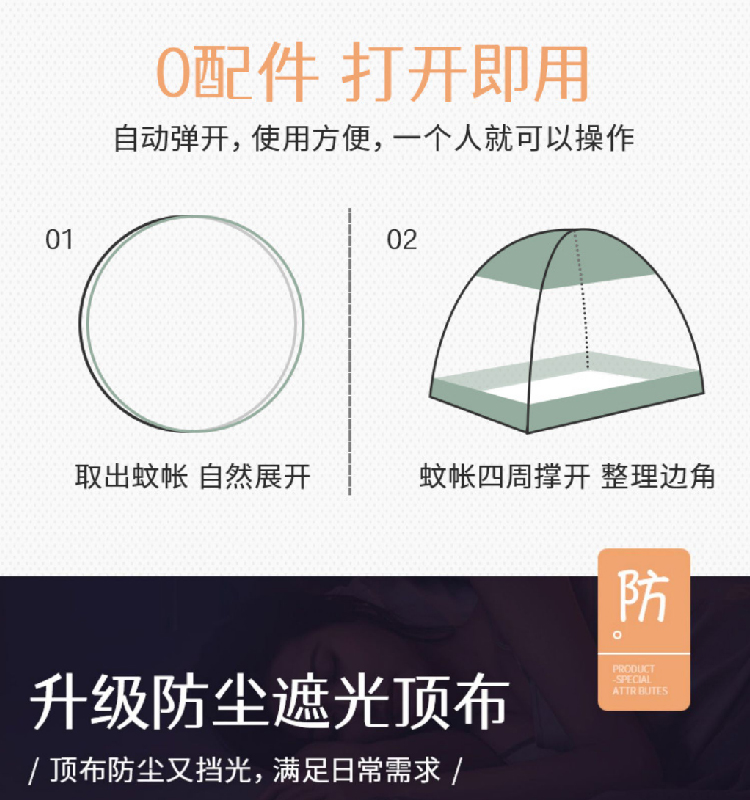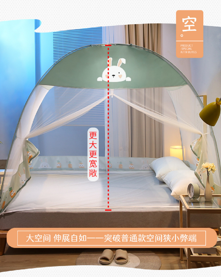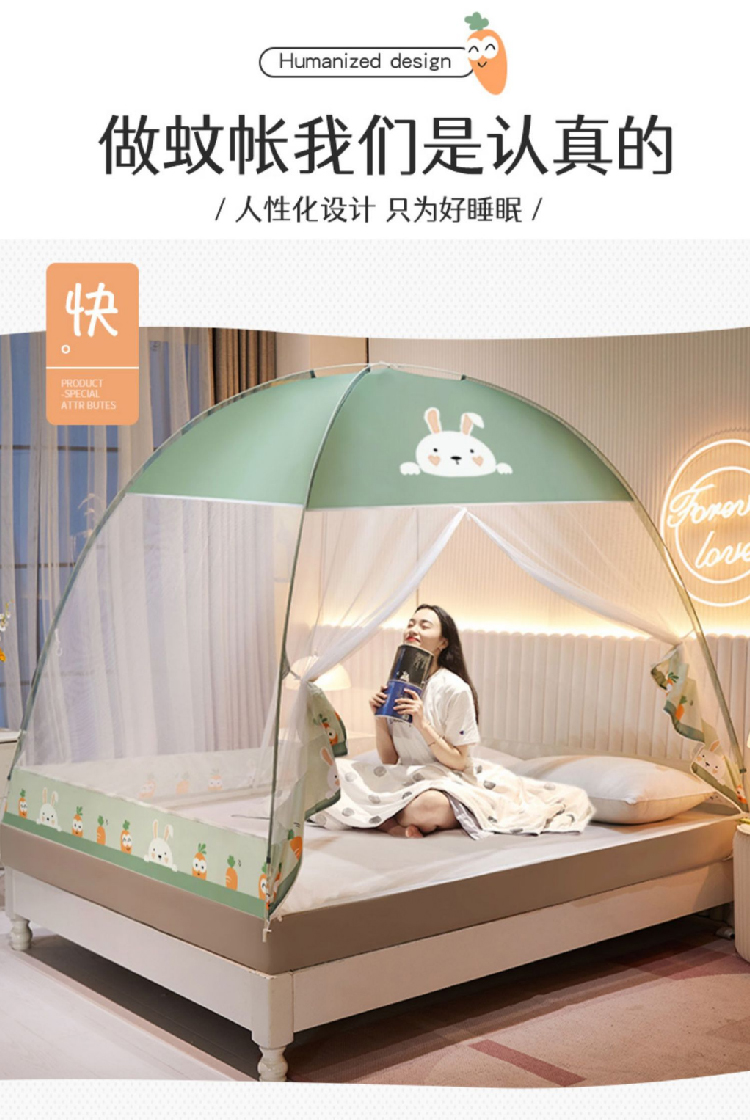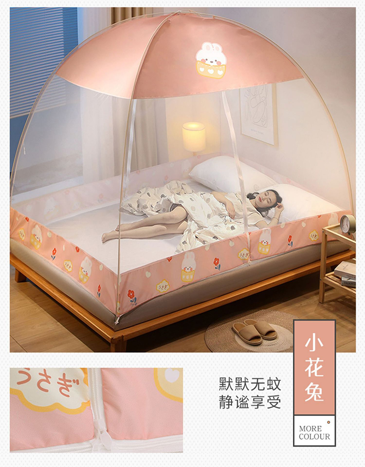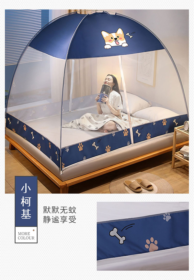 【免安装蚊帐】家用儿童成人蒙古包蚊帐 可折叠加厚圆顶全底2.0帐篷纹帐