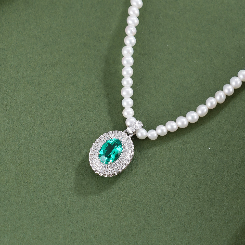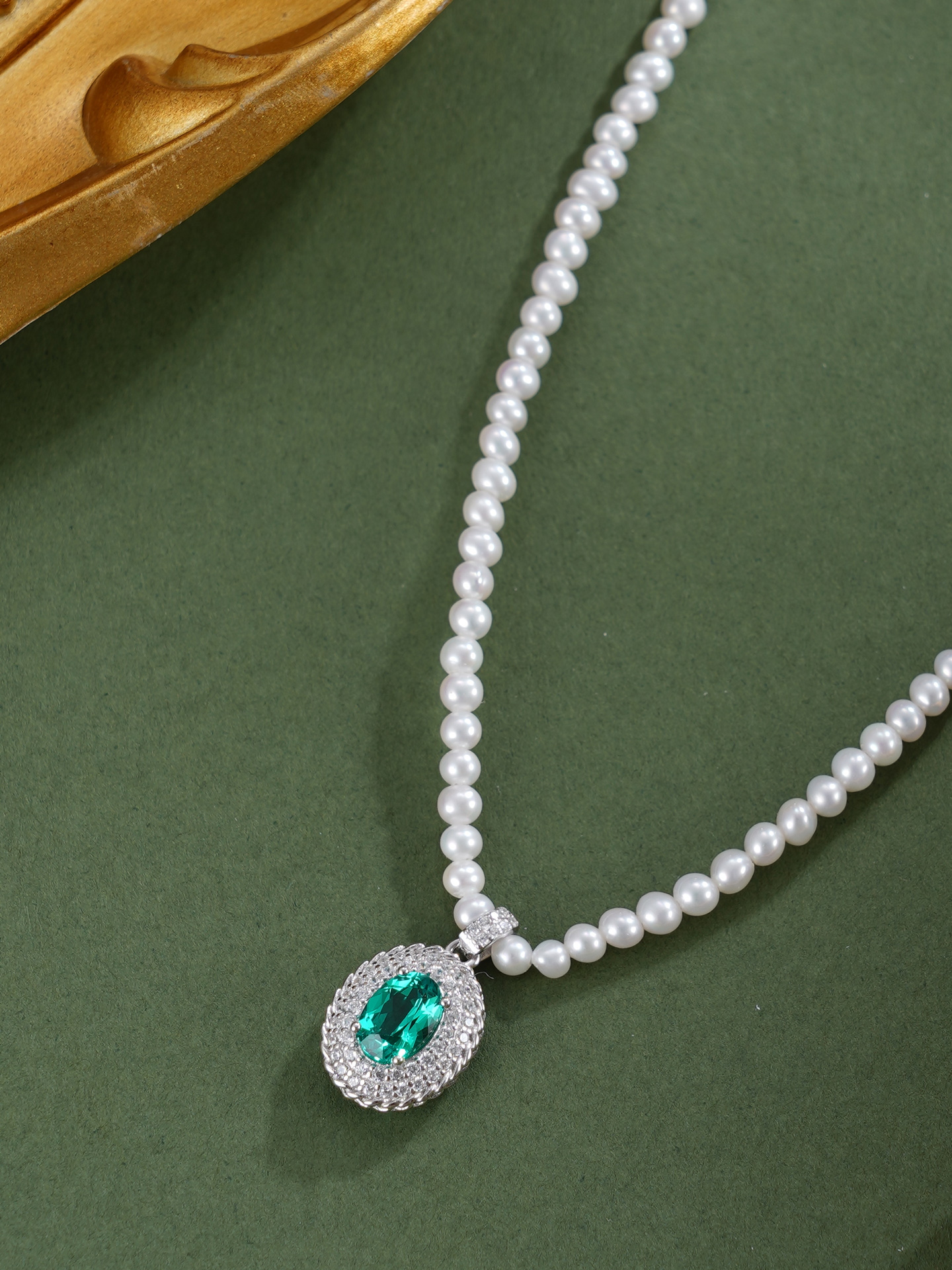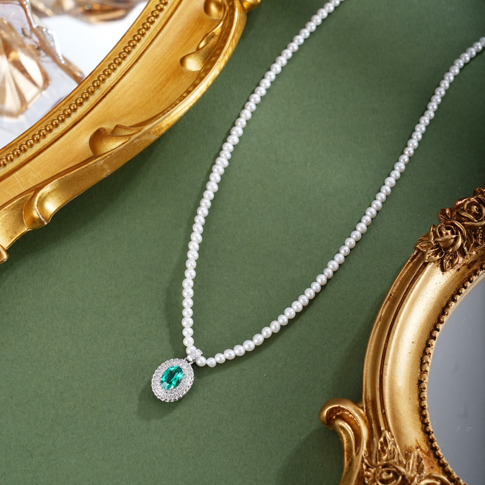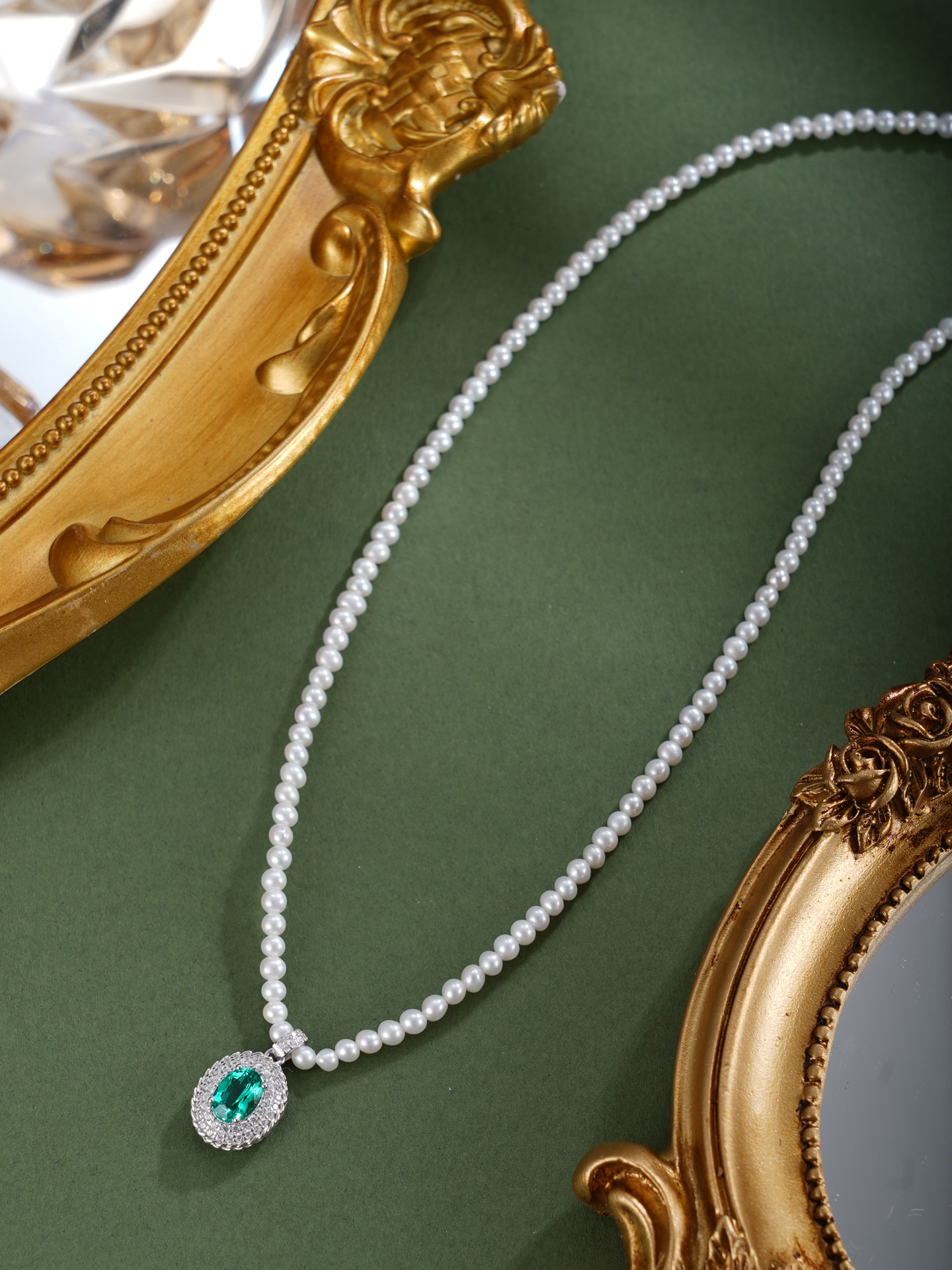 子佩集【碧落凝霜】银S925珍珠惜王妃项链【ZZXL031】2.8mm珠绿椭圆2601