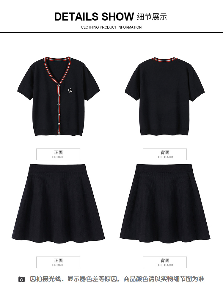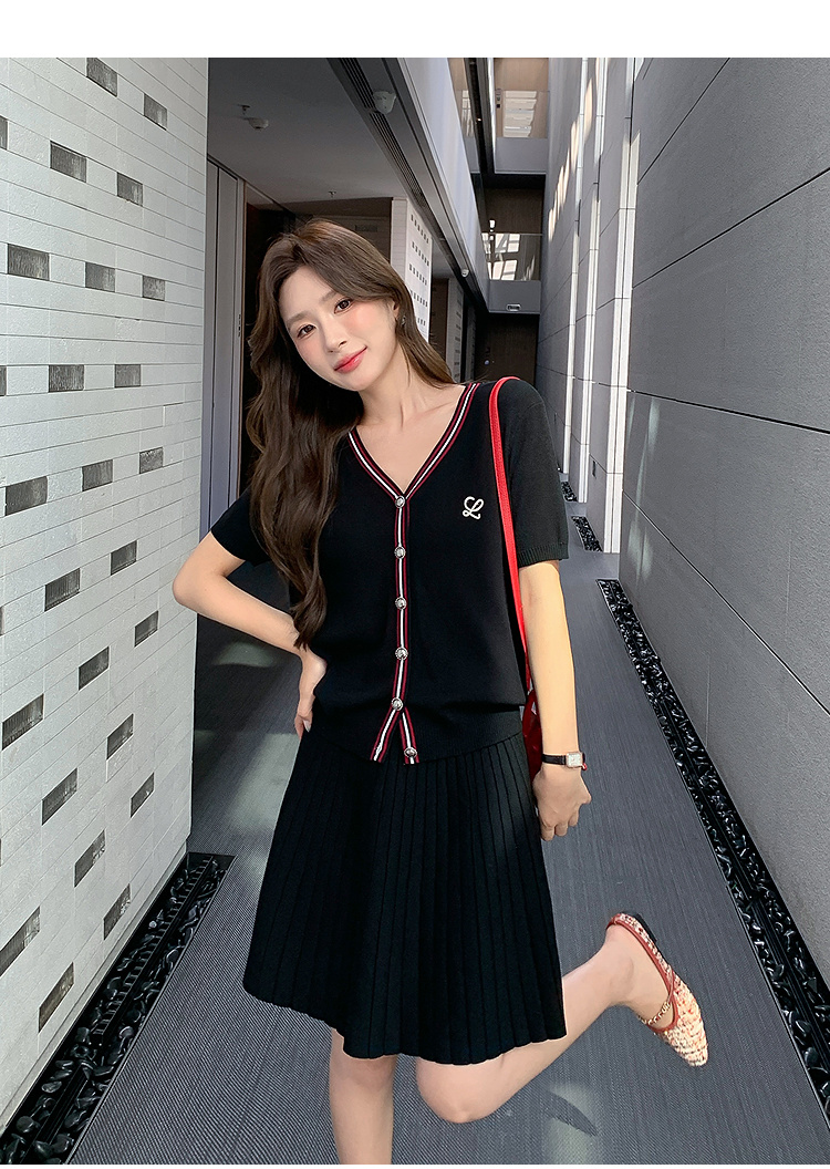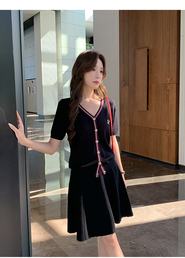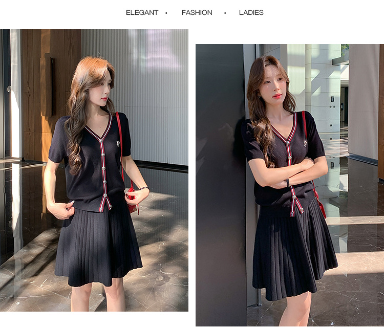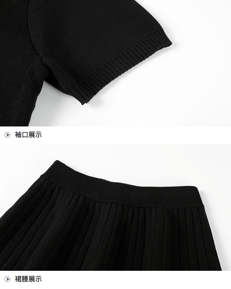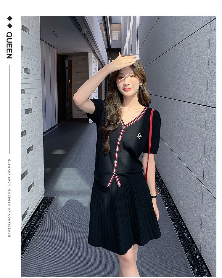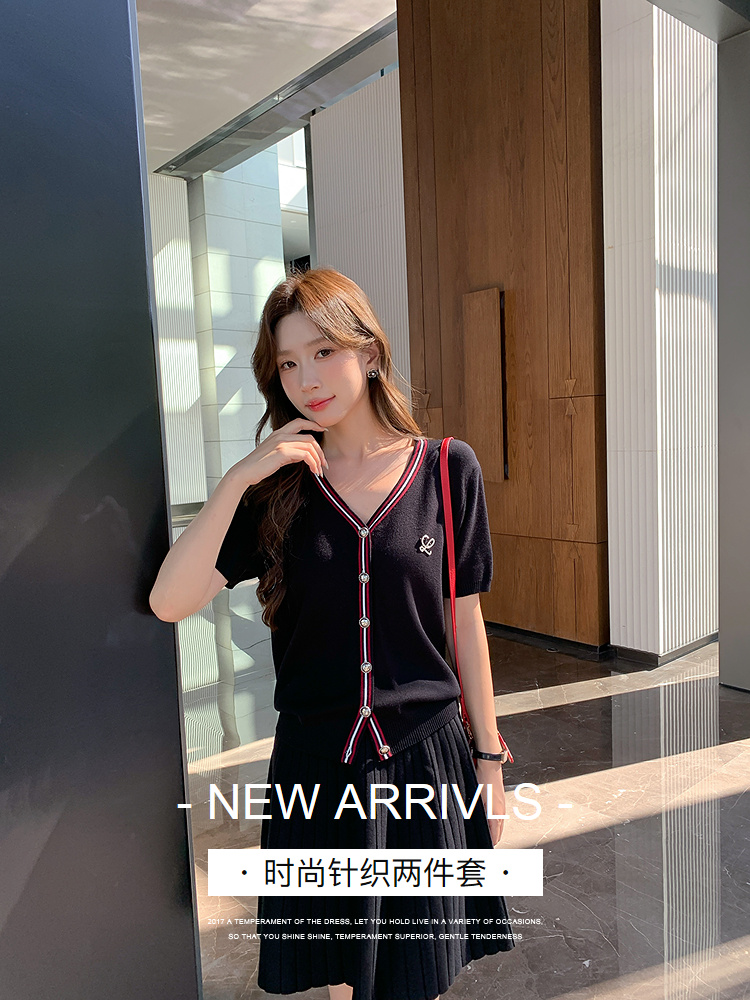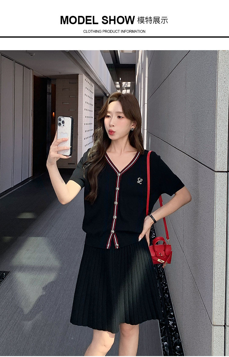 奢姿大码女装2025夏季气质V领针织两件套胖妹妹胸针简约百褶套装9852969757