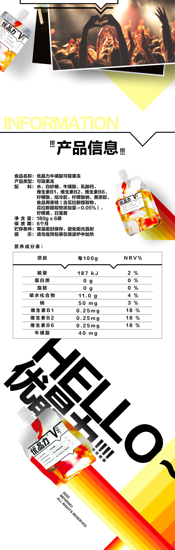 优晶力牛磺酸可吸果冻包180g×6包(礼盒装)
