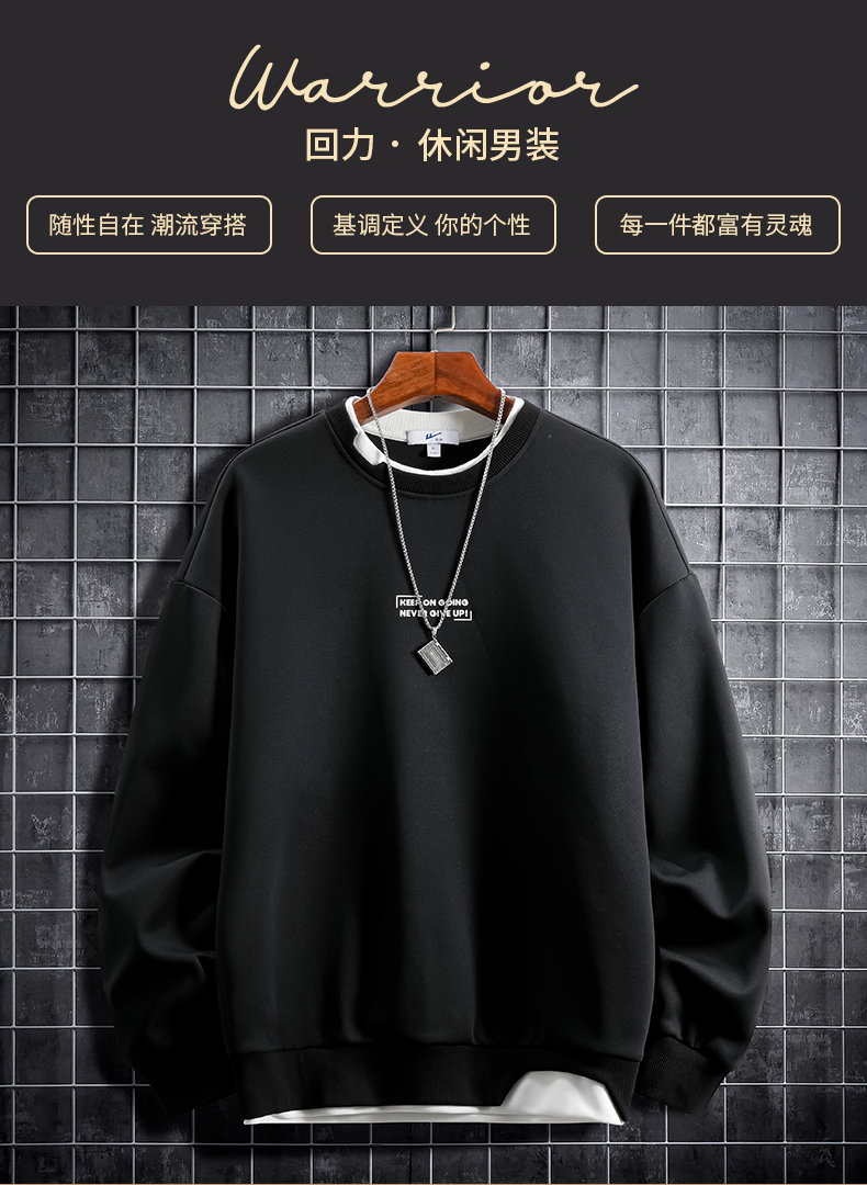 回力卫衣男款秋冬2025新款假两件长袖男士秋装上衣学生青少年外套