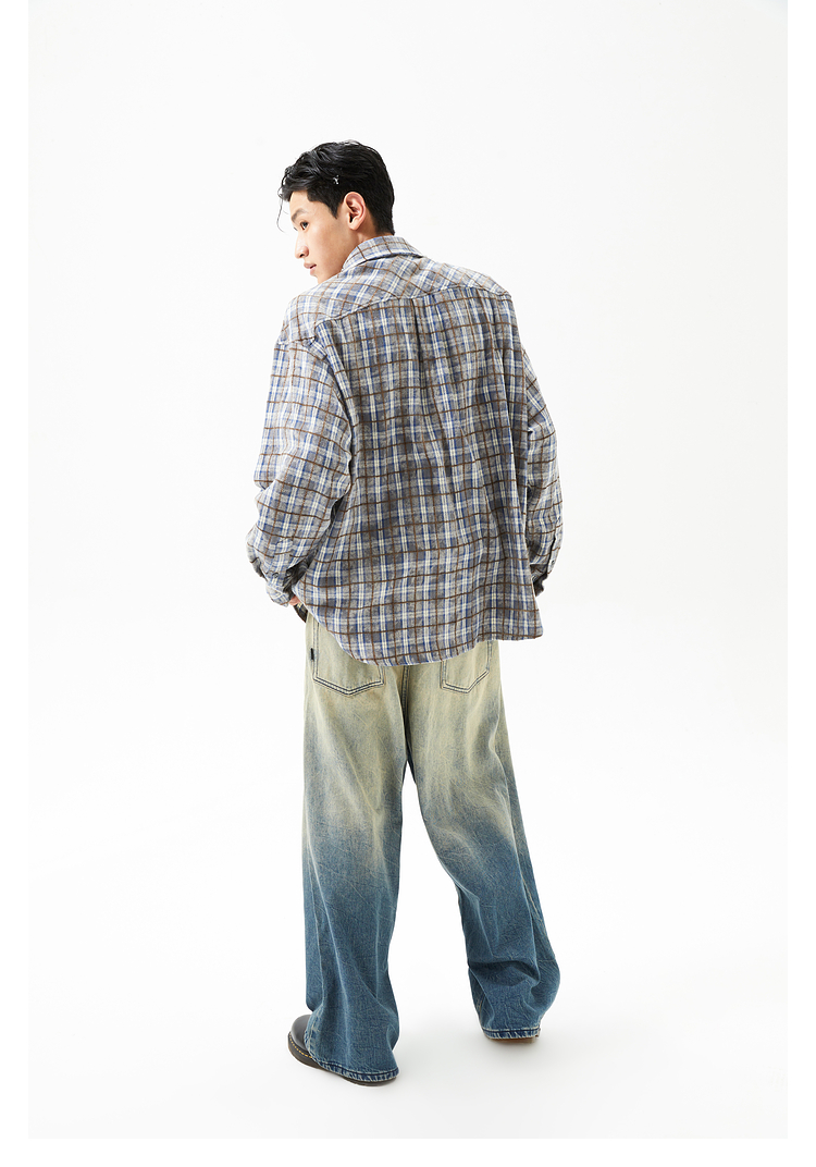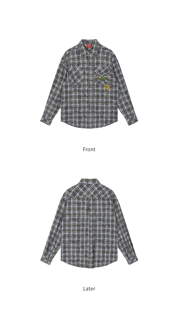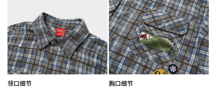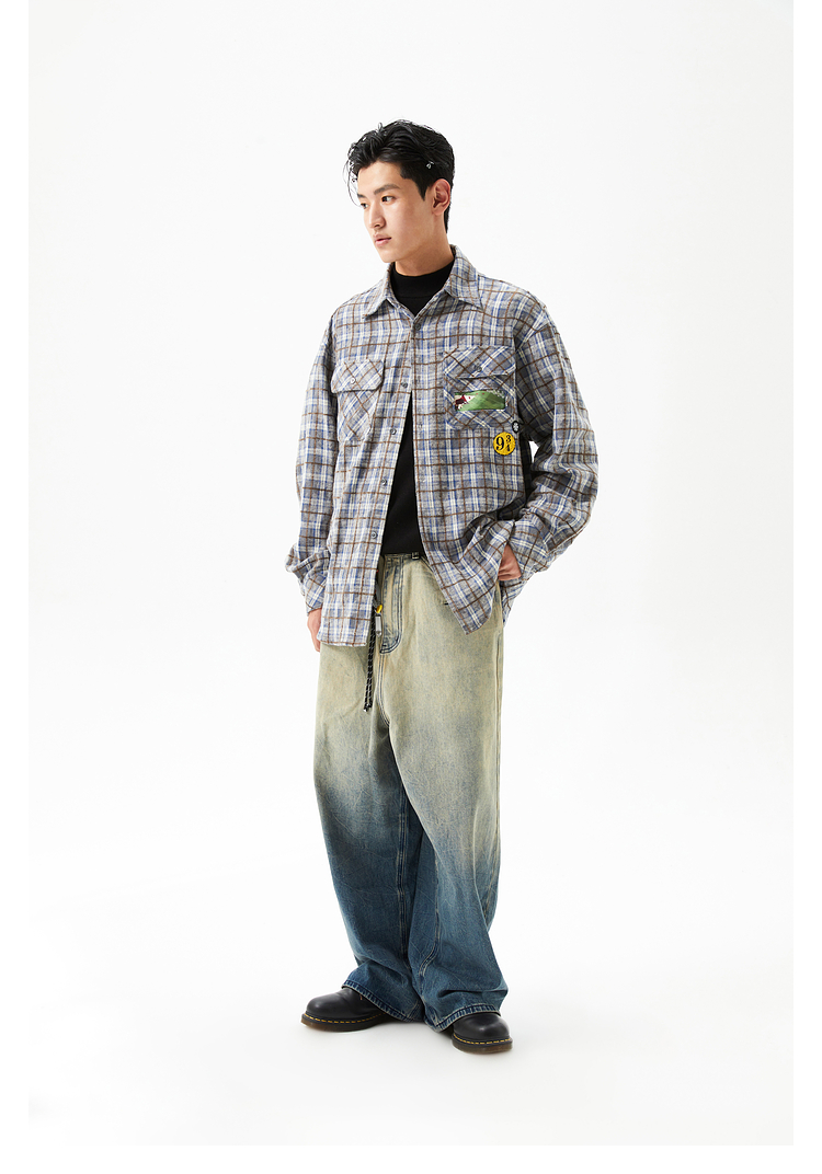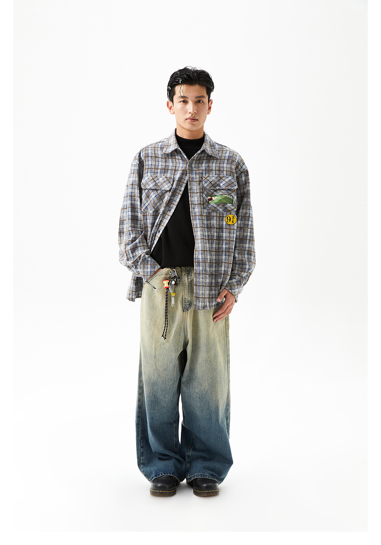 FMACM/CS24200/褪色做旧破坏徽章宽松格纹长袖衬衫