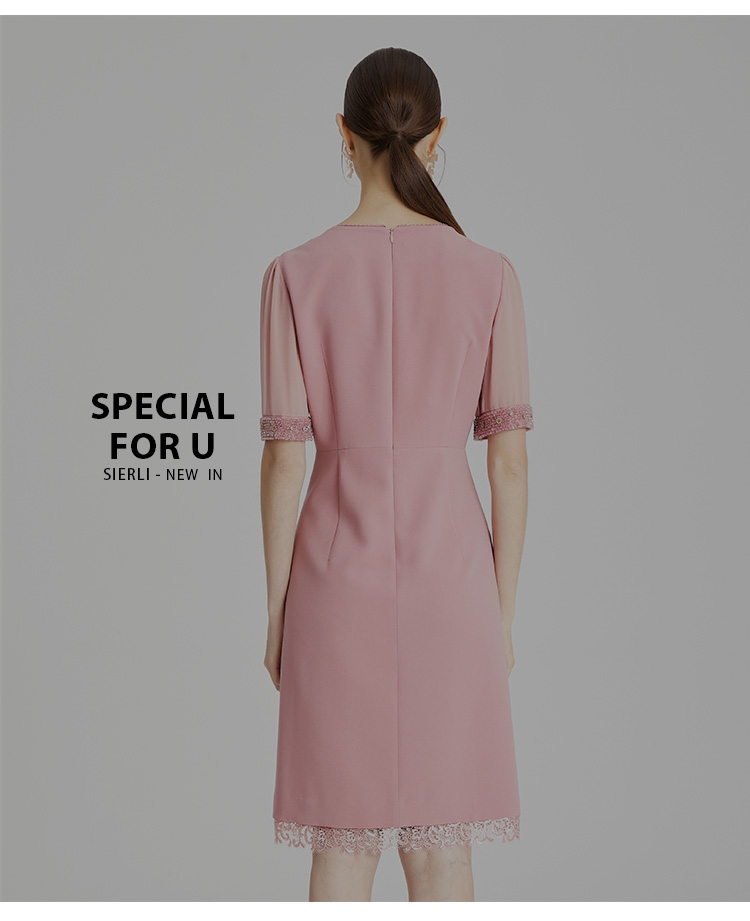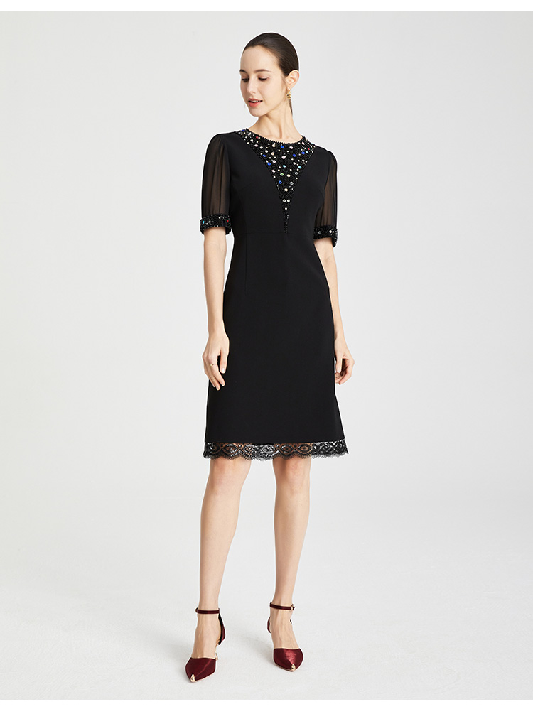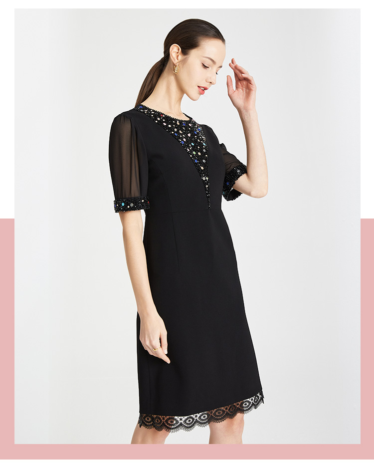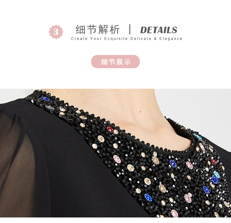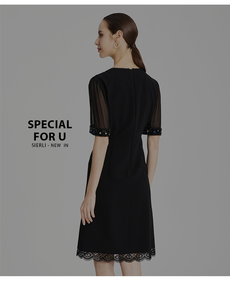 LB819斯尔丽瑟俪2021年春夏上新高端V领手工钉珠女士连衣裙