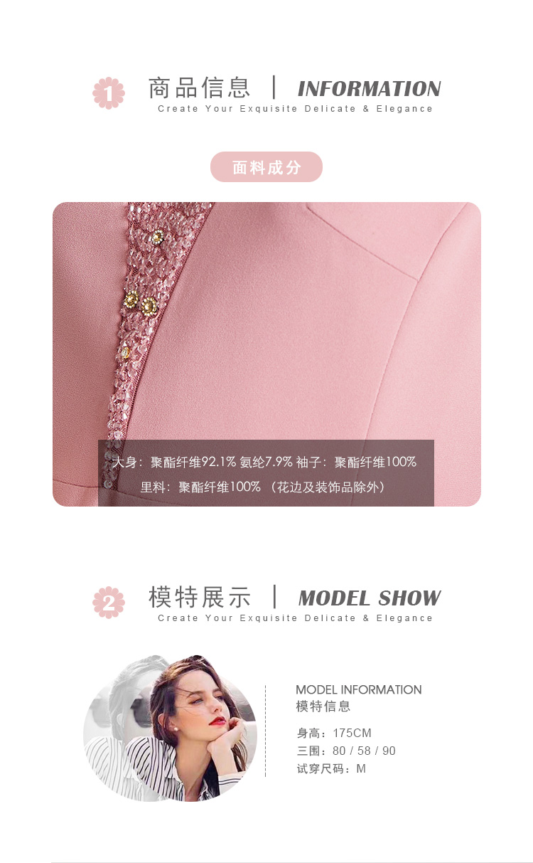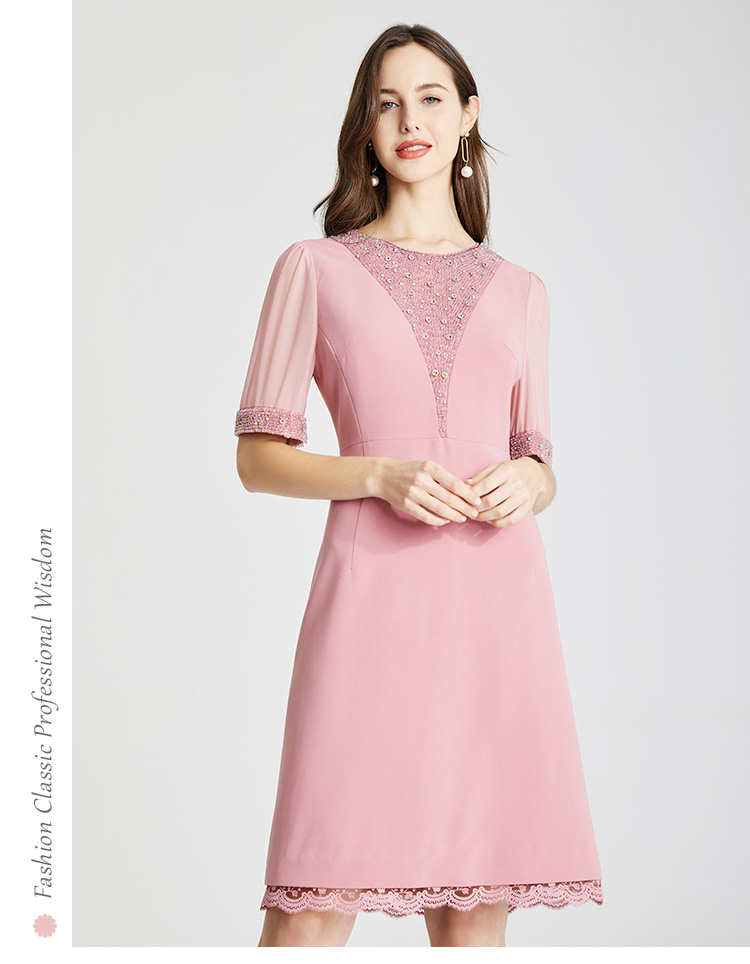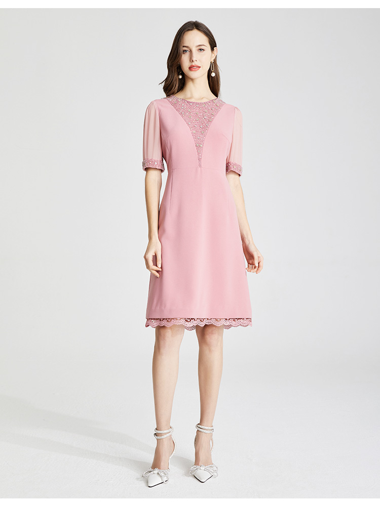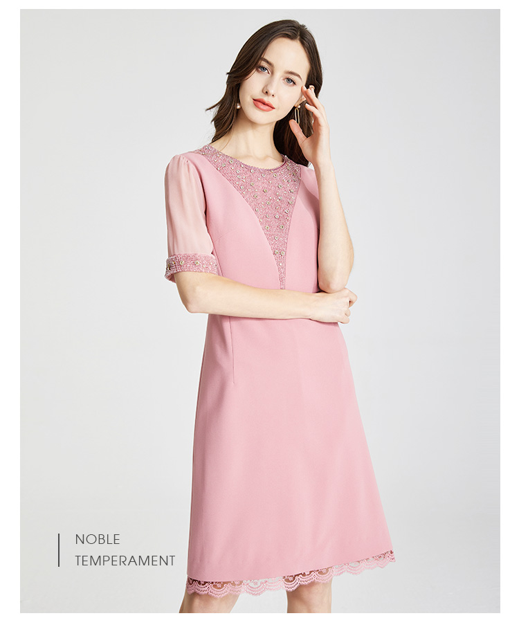 LB819斯尔丽瑟俪2021年春夏上新高端V领手工钉珠女士连衣裙