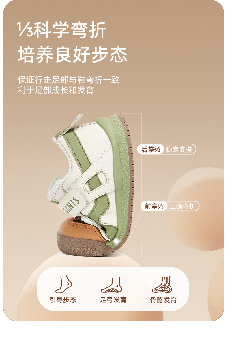 泰兰尼斯学步鞋男宝宝秋季新款童鞋软底鞋子女童机能鞋防滑面包鞋 T01T4C5607