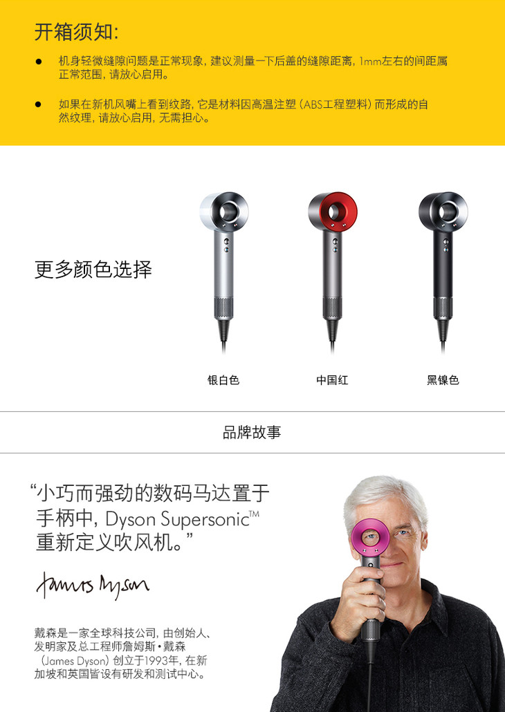 小家电:Dyson戴森吹风机SupersonicHD03紫红新增柔和风嘴