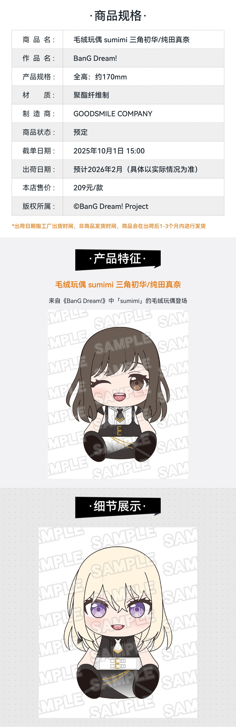【GSC现货】毛绒玩偶 sumimi 三角初华/纯田真奈 BanG Dream!