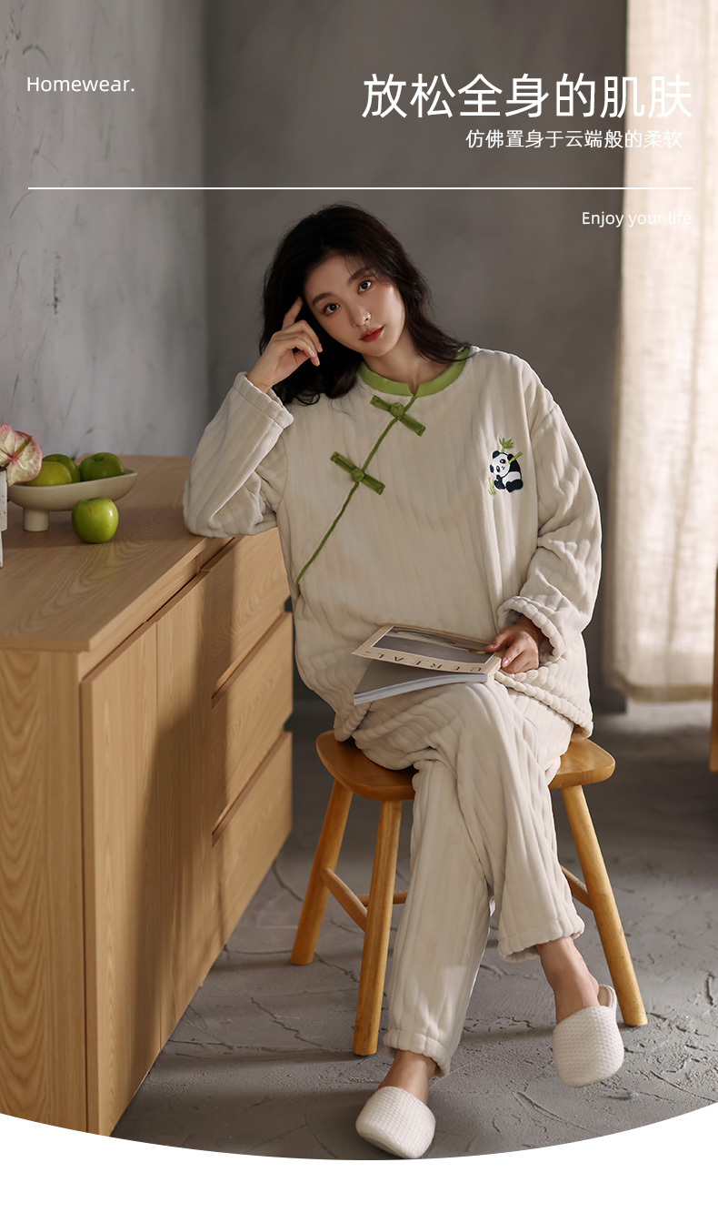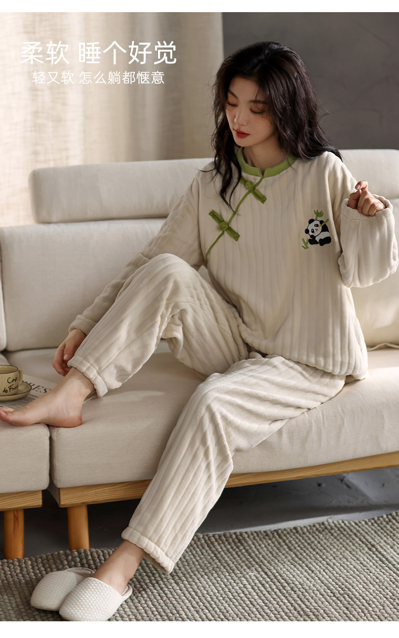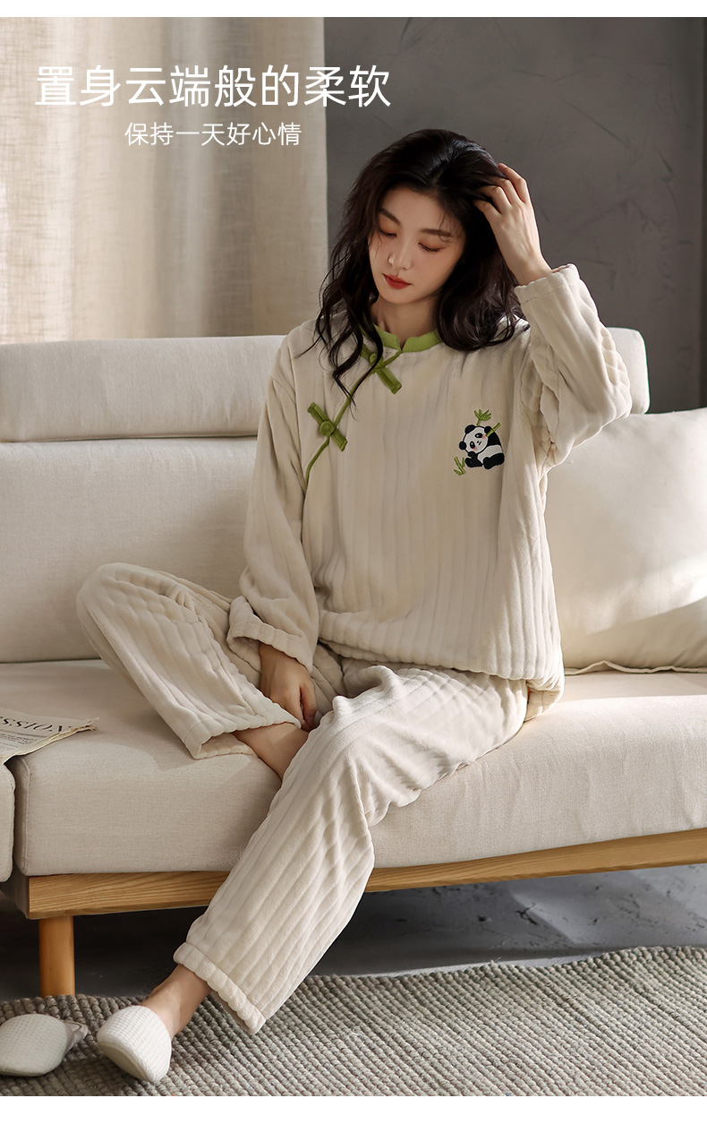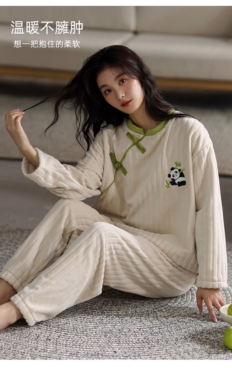 【冬季迎新】洁丽雅剪花绒国风家居服套装柔软舒适加厚保暖睡衣女