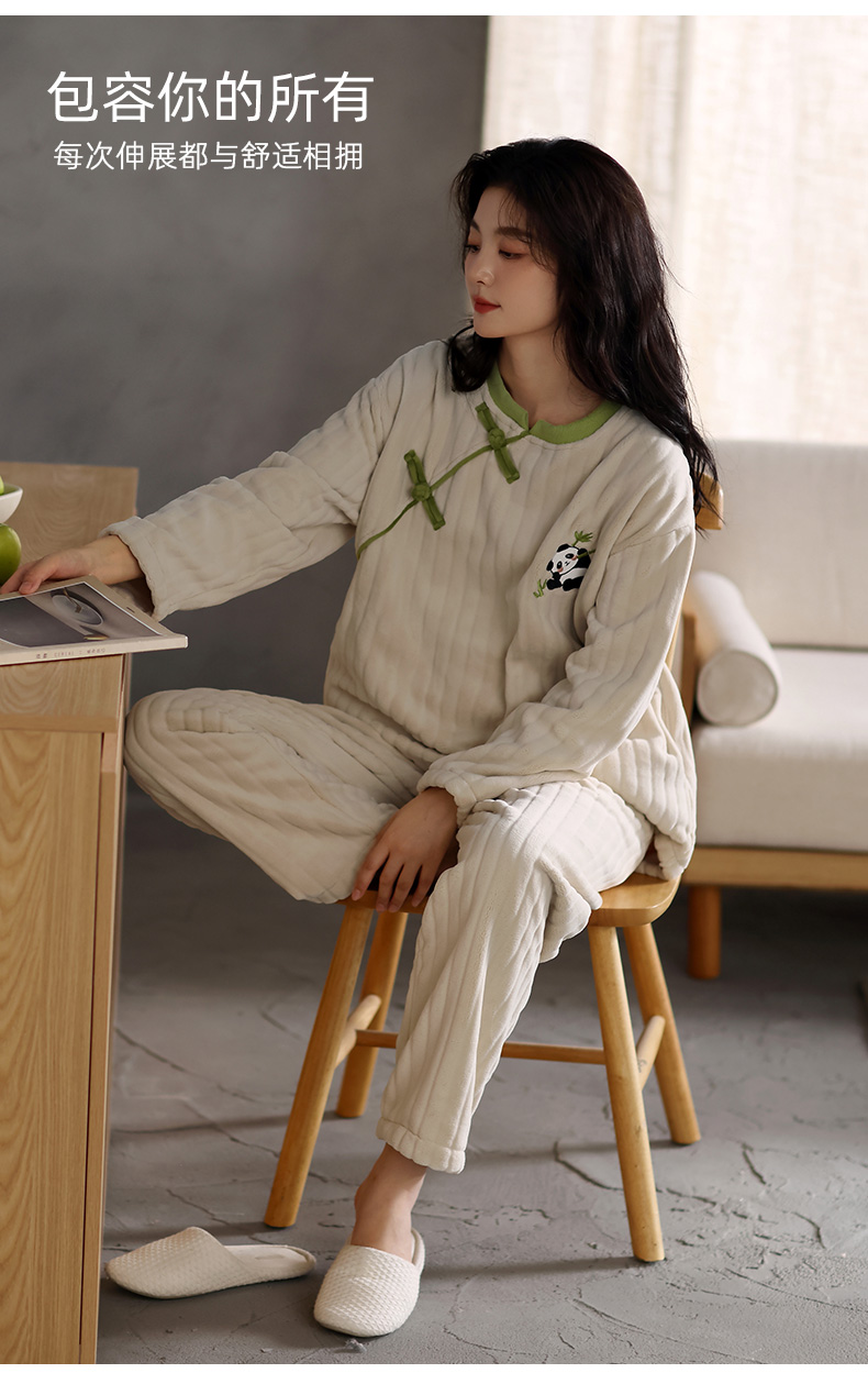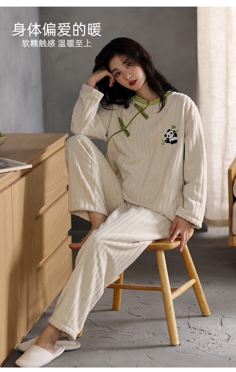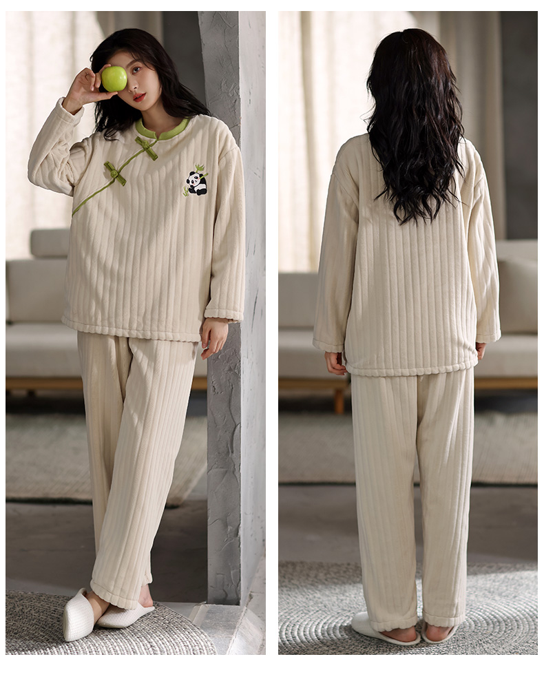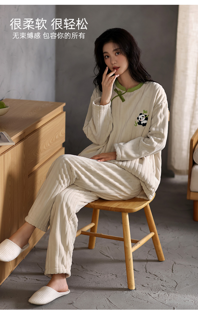 【冬季迎新】洁丽雅剪花绒国风家居服套装柔软舒适加厚保暖睡衣女
