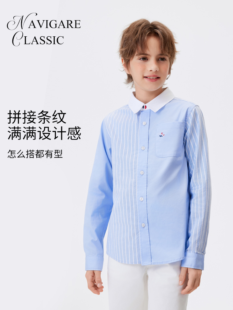 【清仓特惠】【纳维凯尔】【120-165】Navigare小帆船男童春秋款休闲衬衫