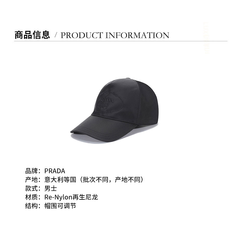【国内现货】PRADA/普拉达 2021款 男士Re-Nylon再生尼龙帽子棒球帽鸭舌帽 2HC179 2DMI