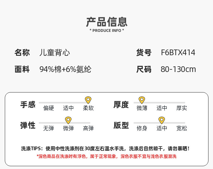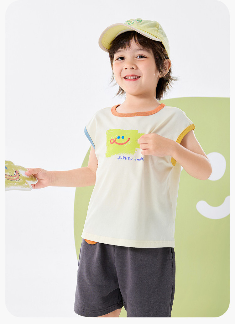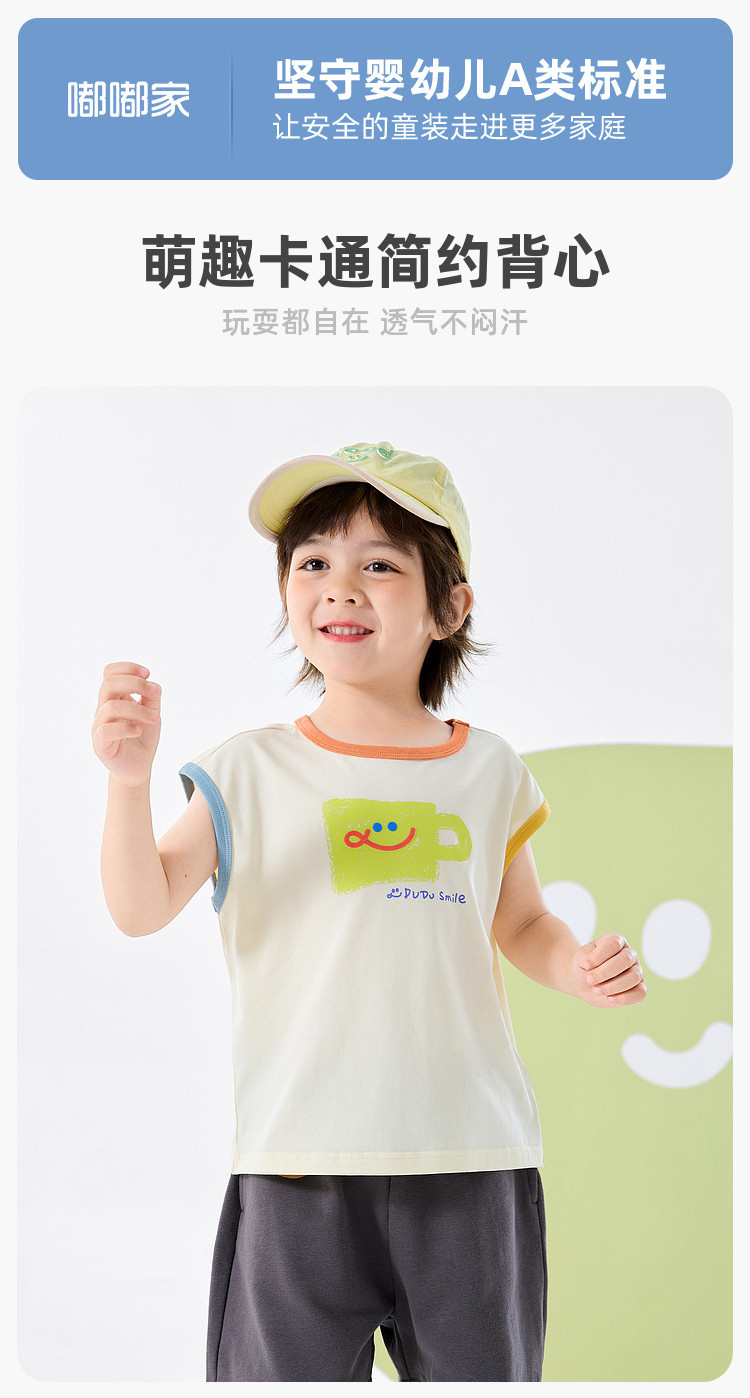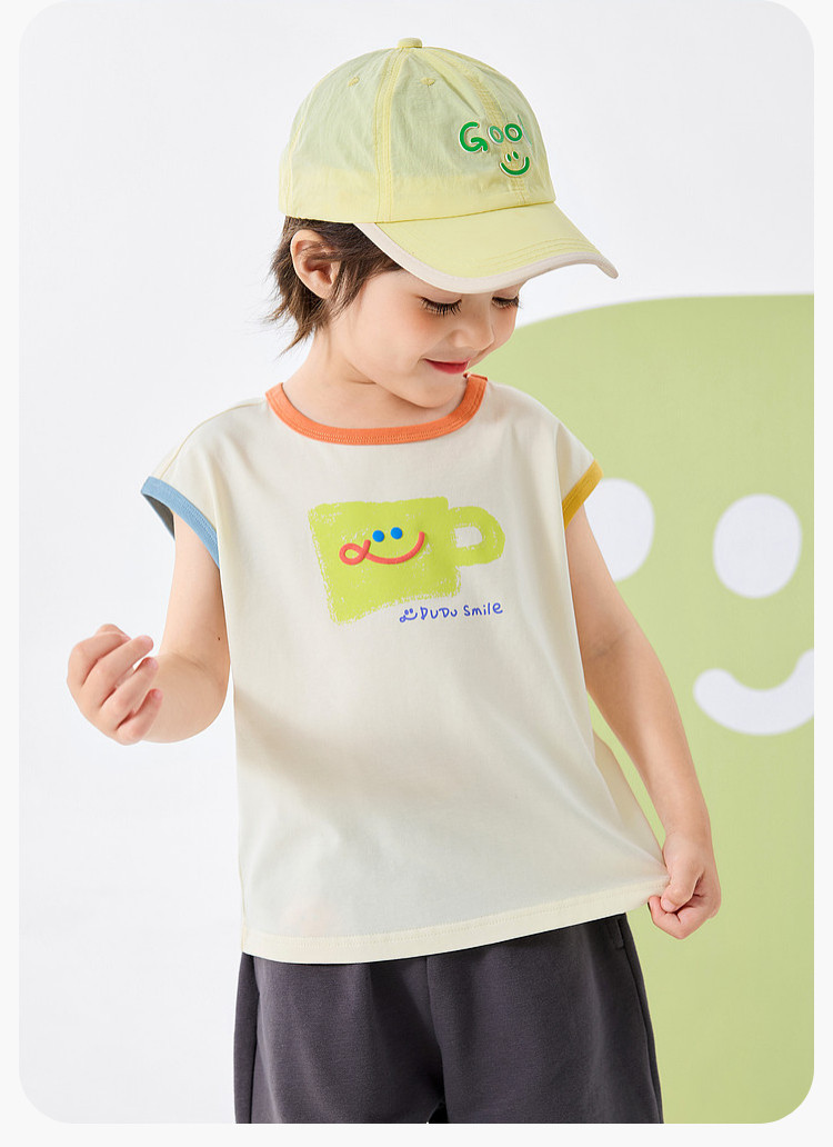 【7A抑菌】嘟嘟家儿童背心男童无袖t恤女童夏装宝宝童装轻薄款F6BTX414