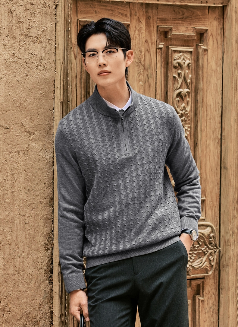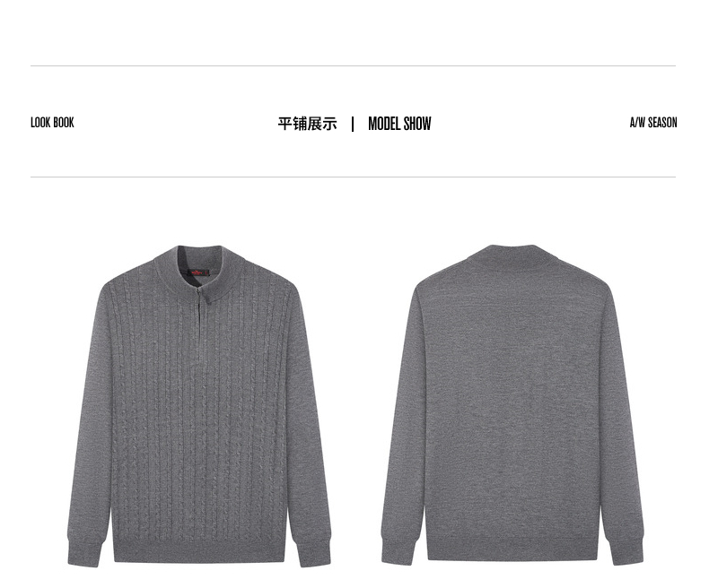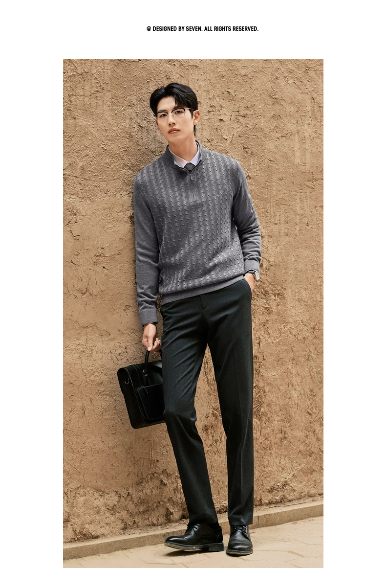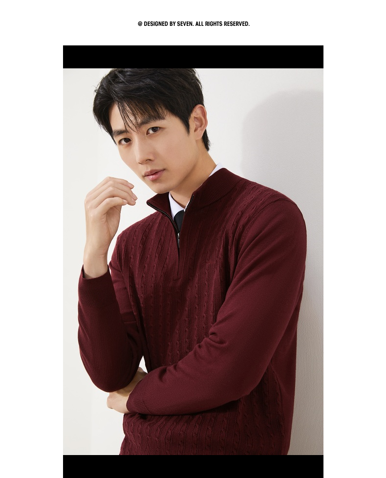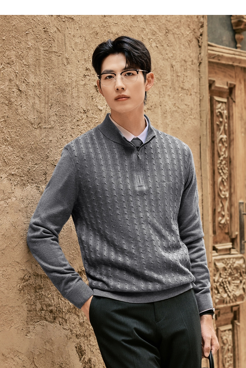 【含羊毛/可机洗/抗静电】柒牌男装秋季新品半开衫立领套头薄毛衫129Y70560
