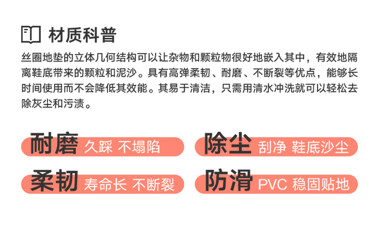 【品名/规格】【大江】高弹丝圈入户地垫,规格尺寸:45*75cm、60*90cm、80*120cm、90*150cm、120*180cm