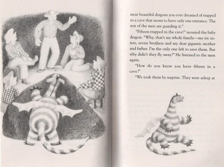 这是一本让人开心的书——文字、装帧、有趣的黑白插图,讲述了一个小男孩从野兽横行的小岛上解救受虐待的小飞龙的故事。——《纽约客》