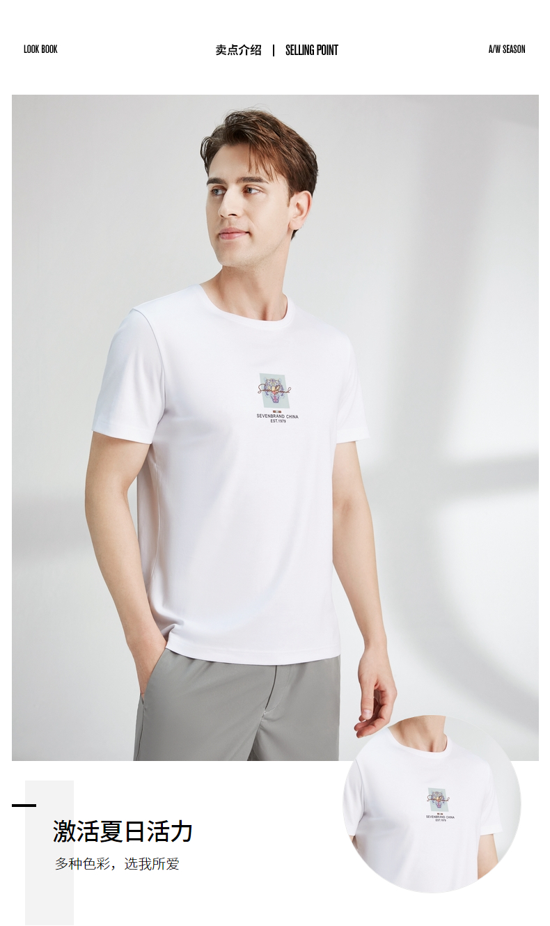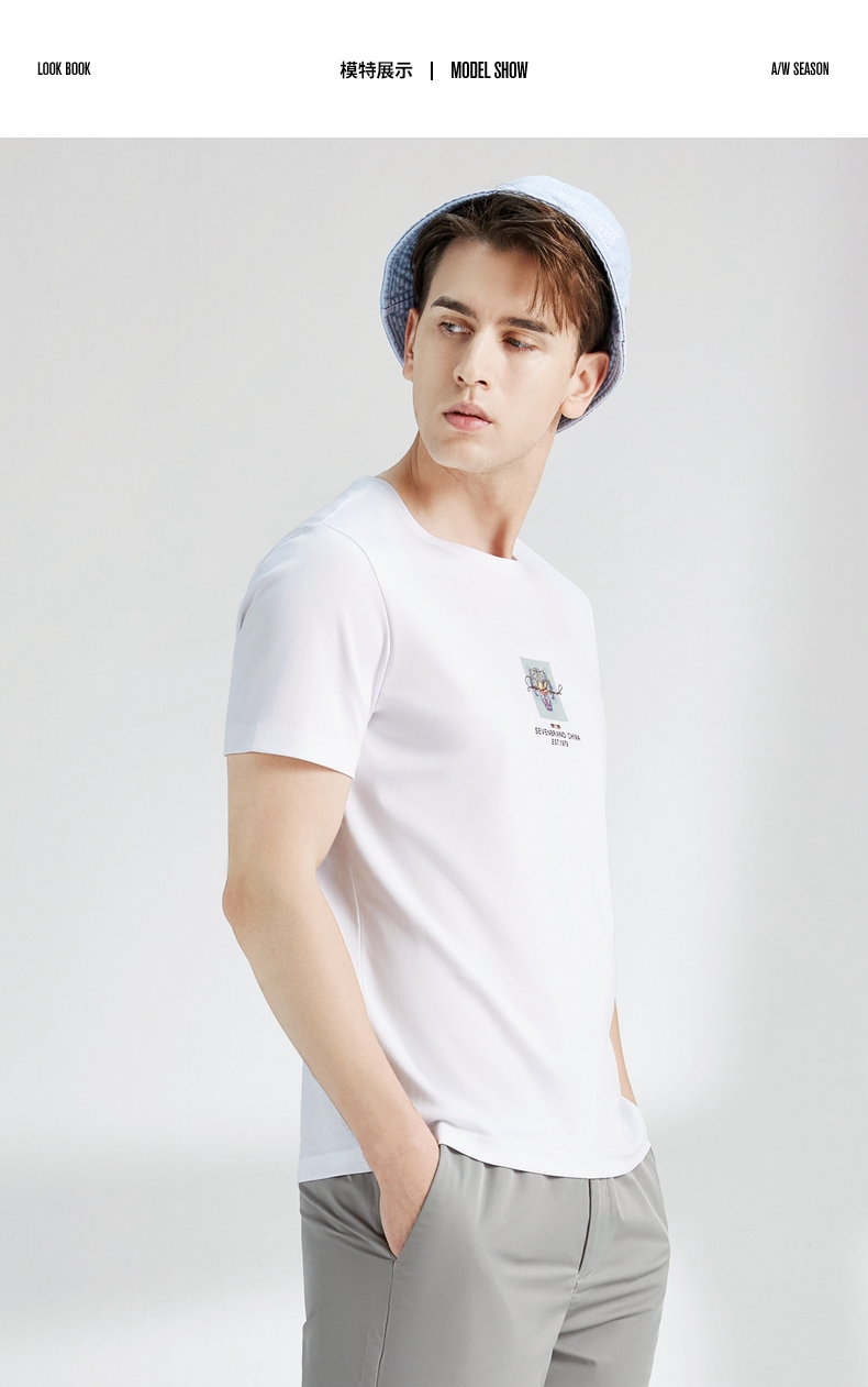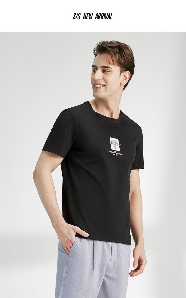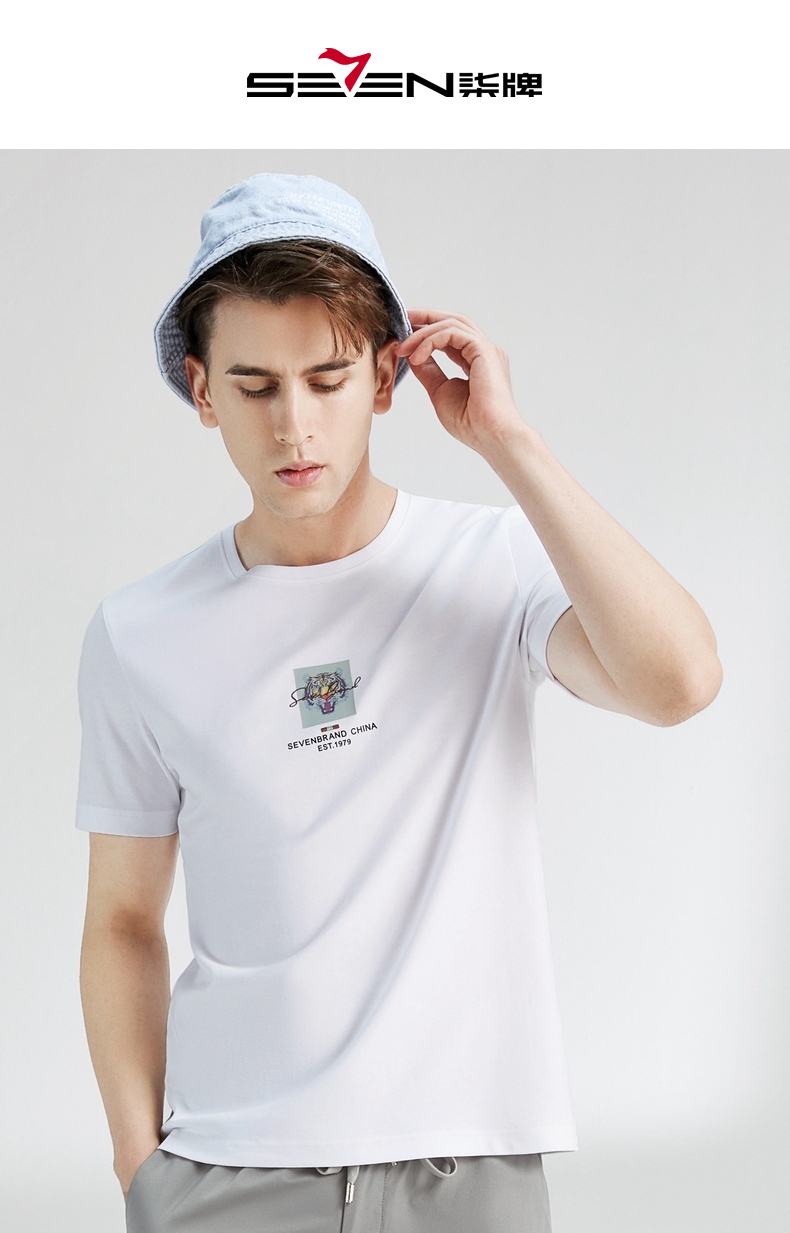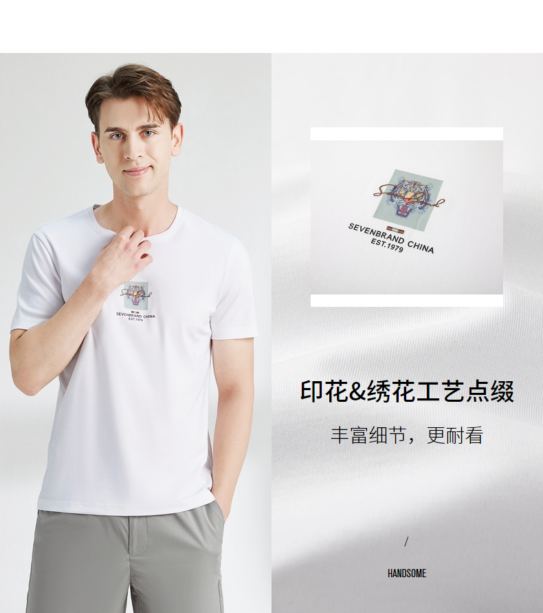 【水柔棉】柒牌男士短袖t恤时尚休闲百搭小老虎圆领印花体恤上衣 122T71420