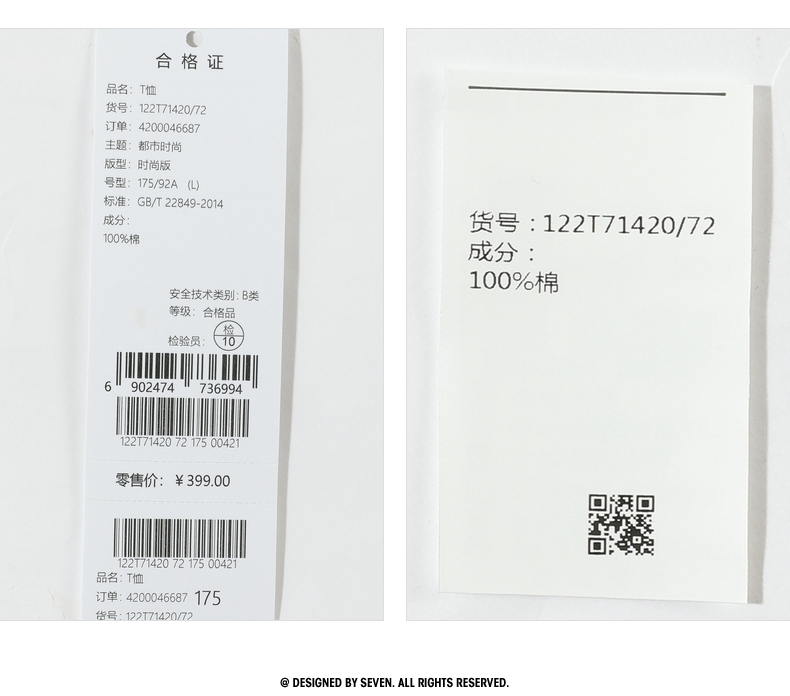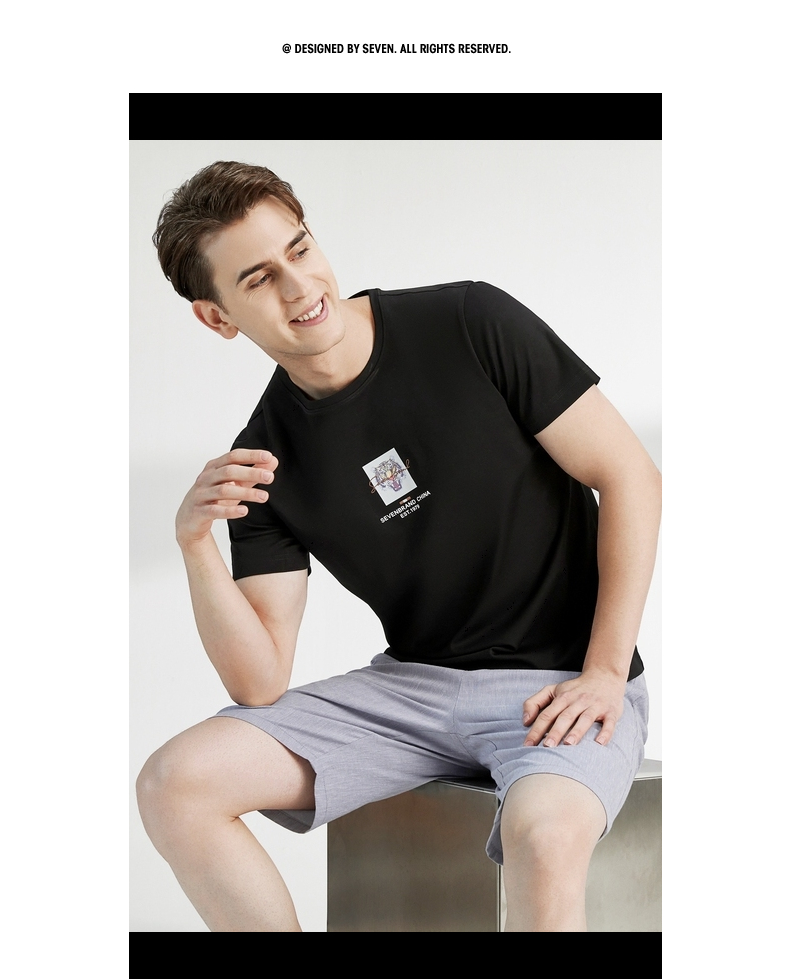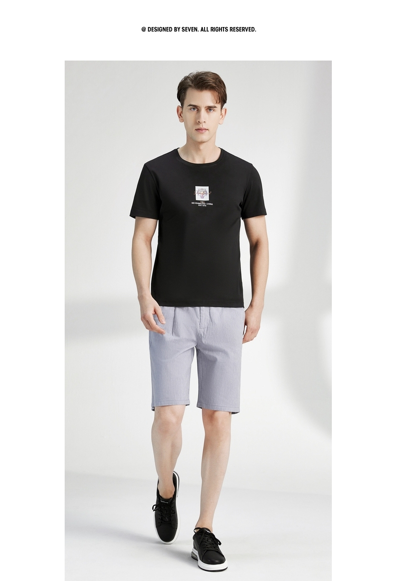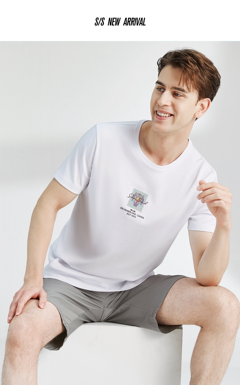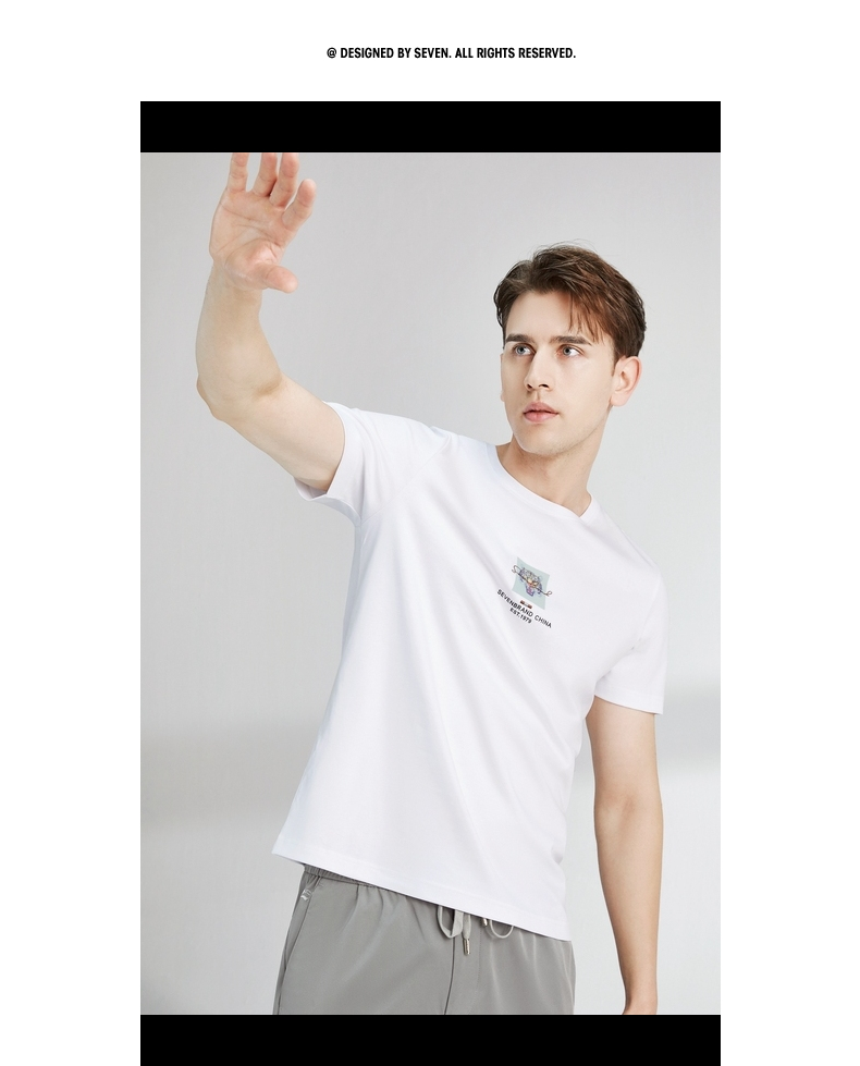 【水柔棉】柒牌男士短袖t恤时尚休闲百搭小老虎圆领印花体恤上衣 122T71420