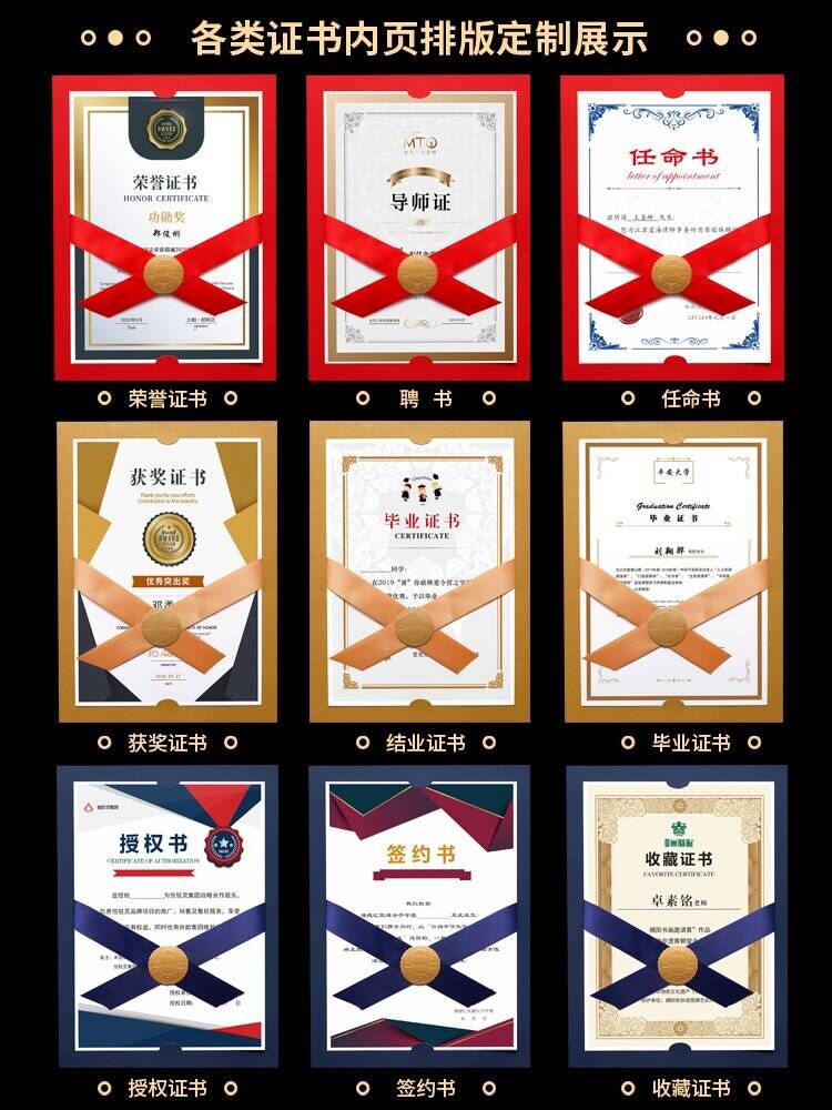 荣誉证书外壳奖状A4可打印证书烫金封面定制聘书毕业结业培训优秀员工获奖证书