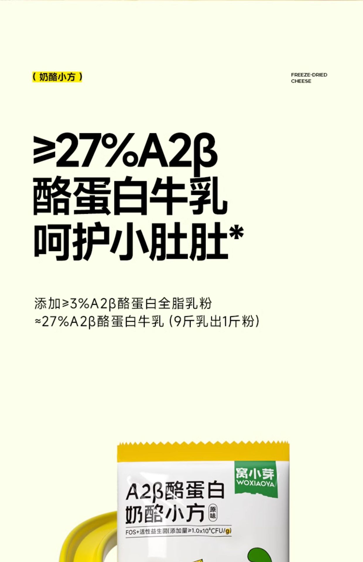 窝小芽奶酪小方原味A2酪蛋白冻干奶酪块高钙高蛋白健康儿童小零食