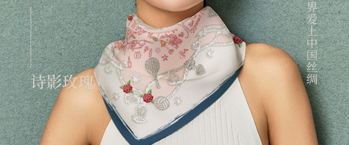 万事利“诗影玫瑰”63厘米WL双面印花中方巾