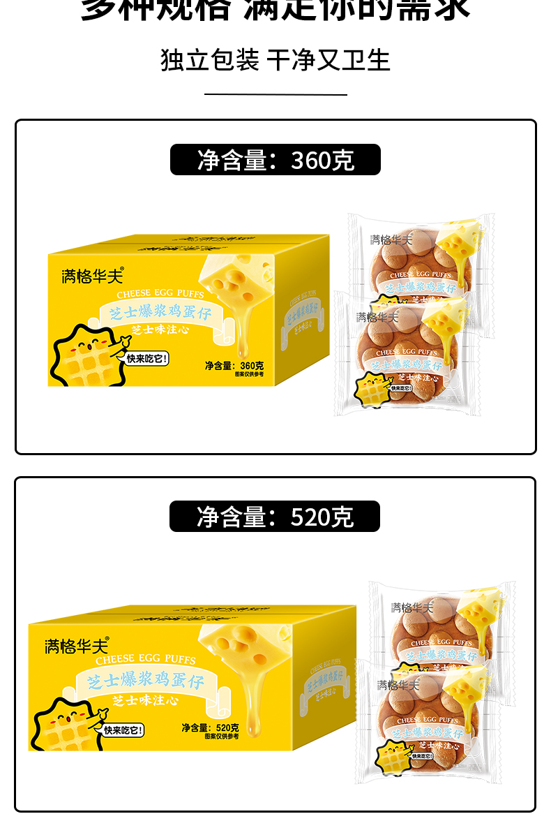满格华夫芝士爆浆鸡蛋仔360克*2箱