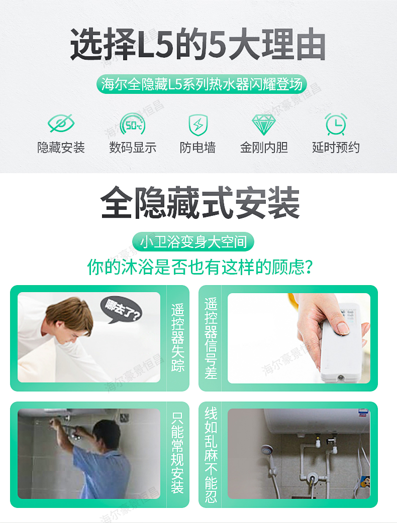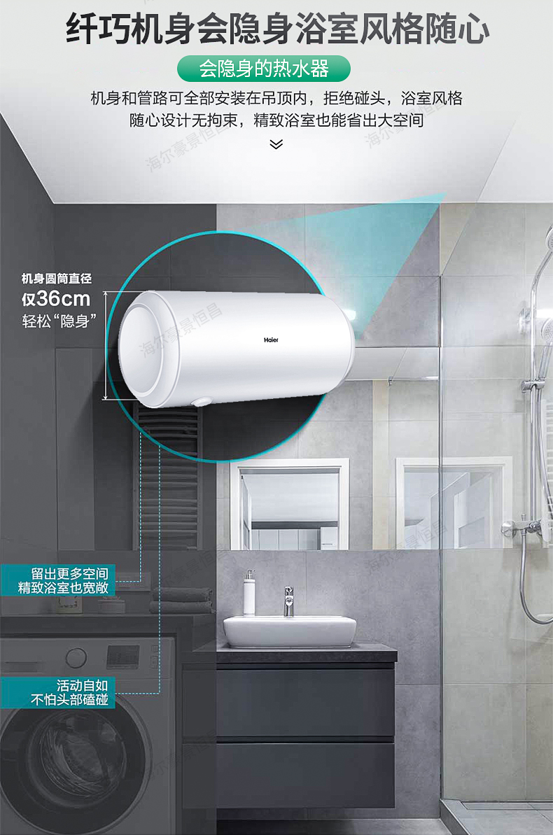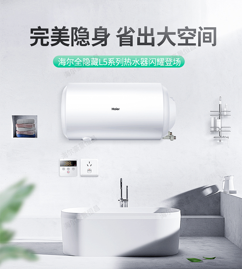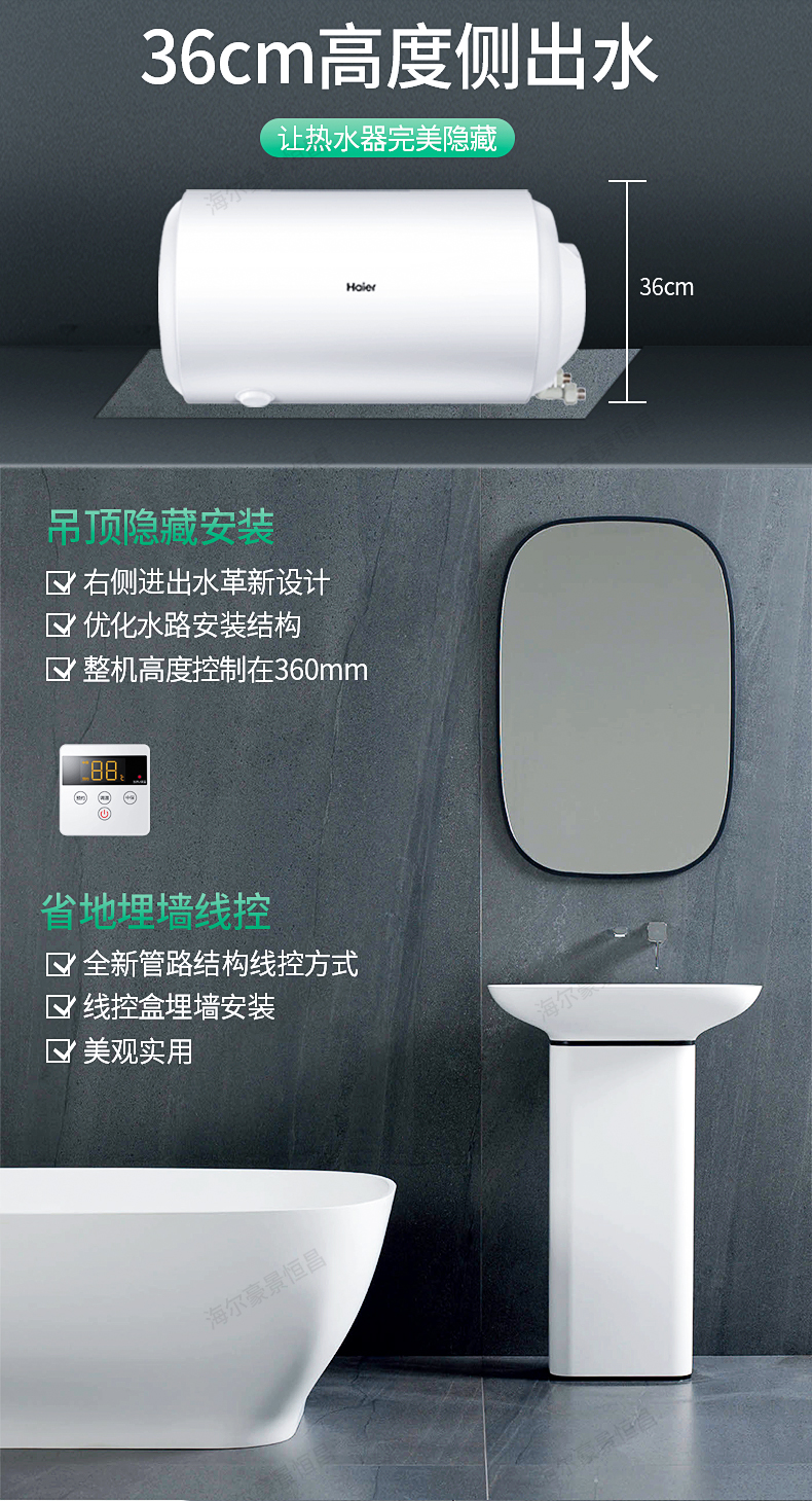 海尔(Haier)电热水器线控全隐藏式吊顶安装侧出水家用省空间防电墙86面板 40升【侧出水ES40H-L5(ET)】,ES50H-L5(ET,ES60H-L5(ET)