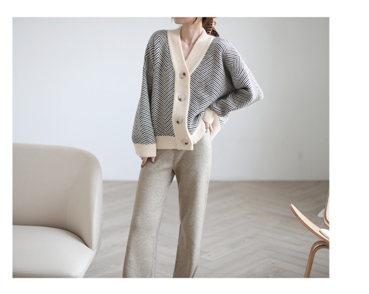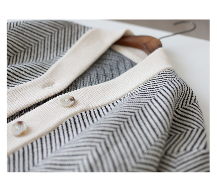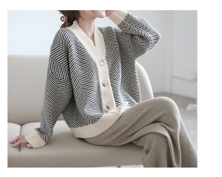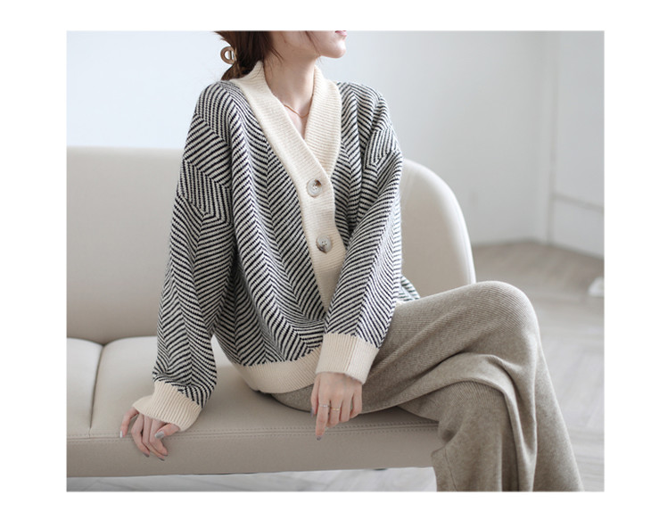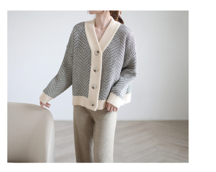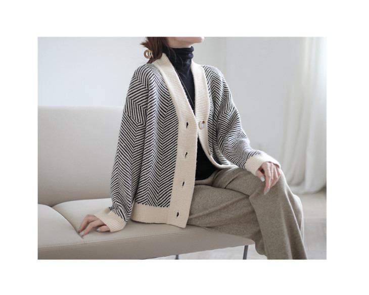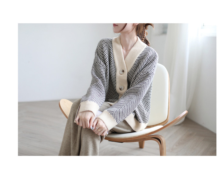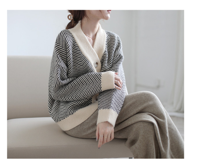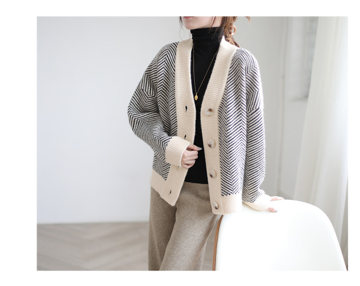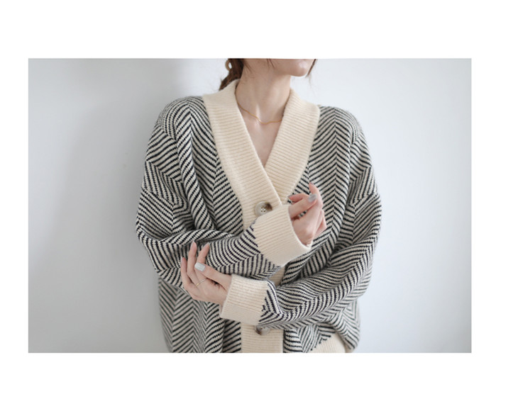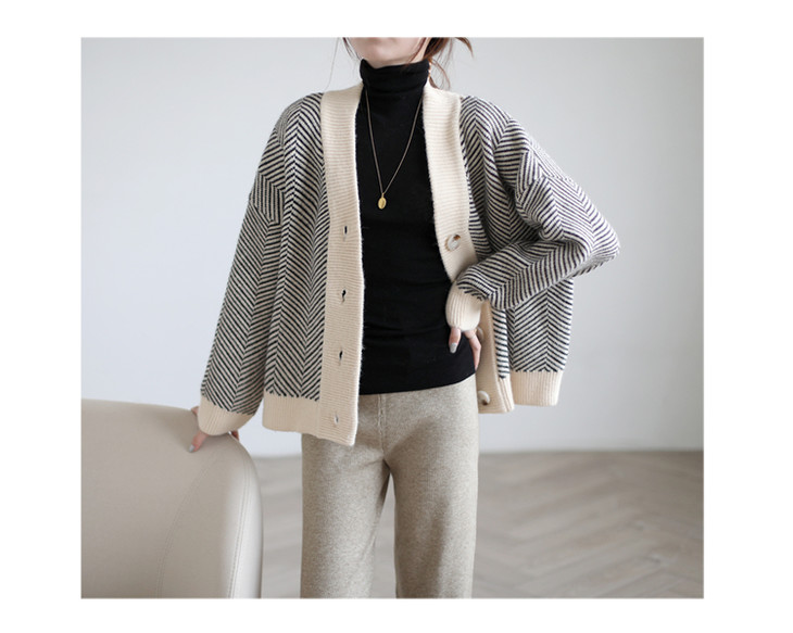 秋冬复古针织开衫女韩版条纹慵懒风宽松气质百搭外穿毛衣外套