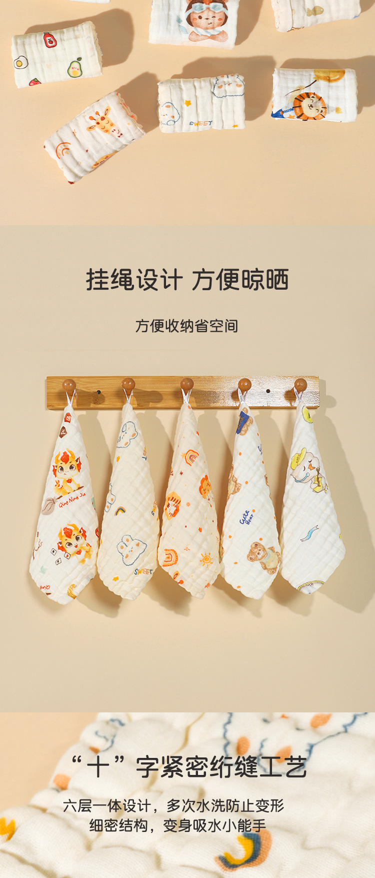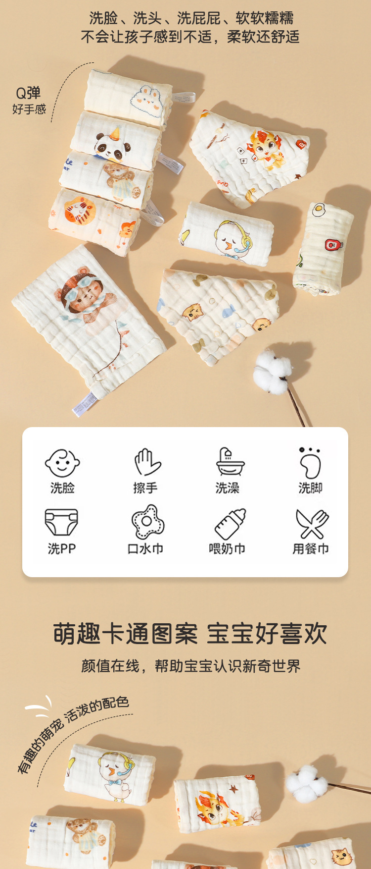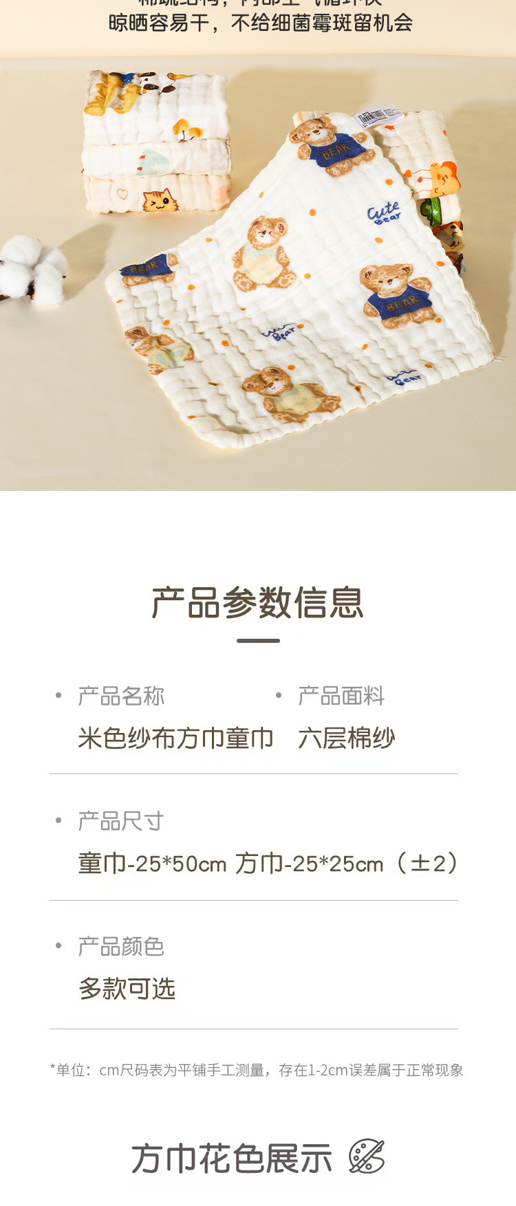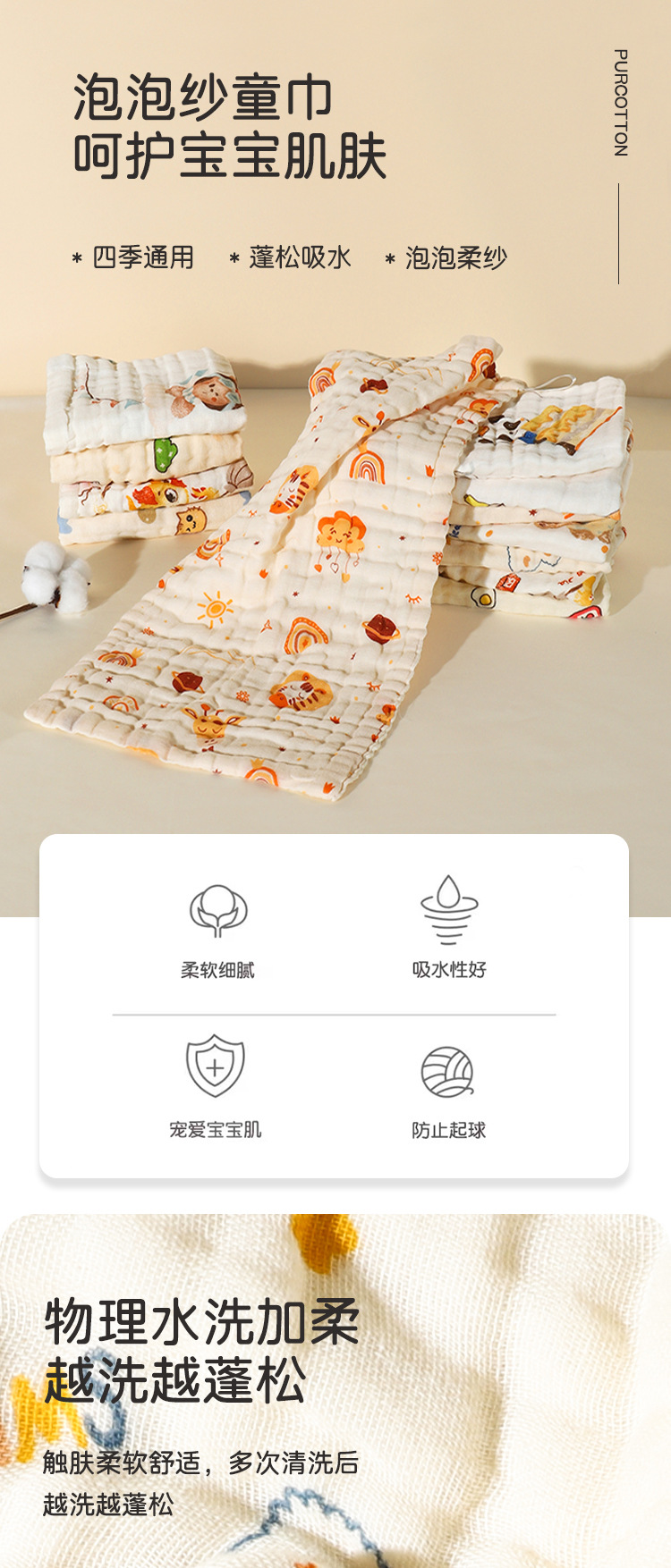 【醒粉福利19.9元起5条装】六层纯棉纱布方巾 超柔泡泡纱吸水加厚婴儿A类口水巾儿童毛巾