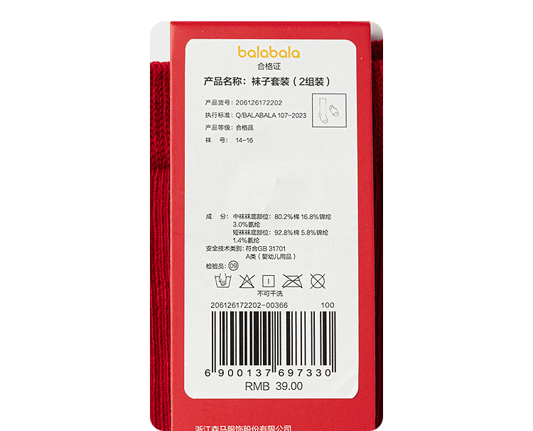 【商场同款】巴拉巴拉儿童袜子春秋男女棉袜宝宝毛圈中筒袜两件套