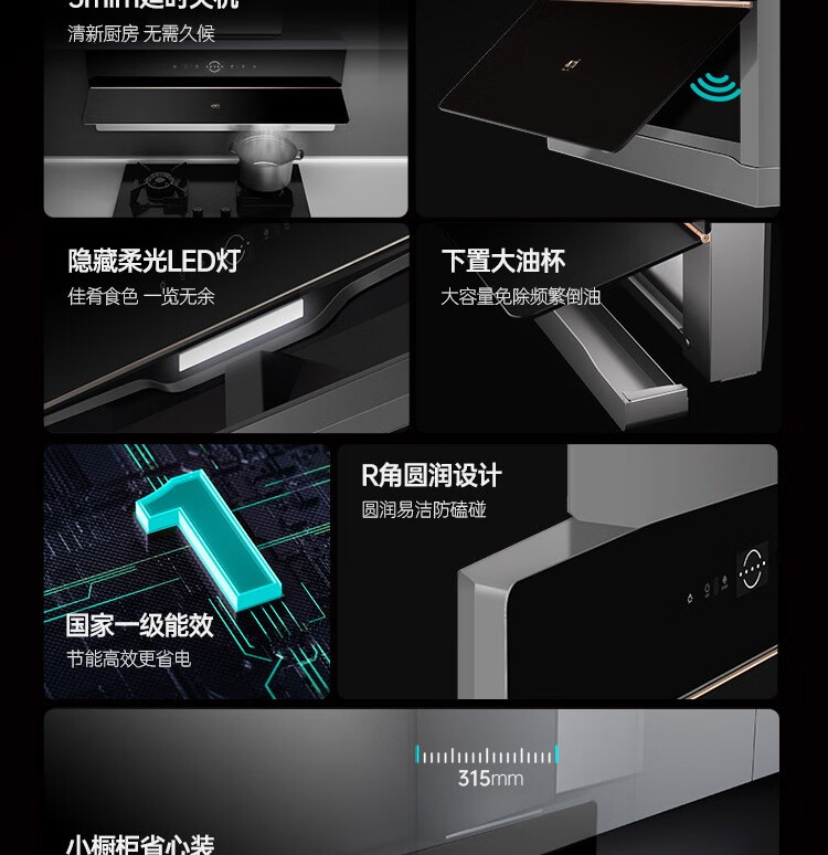 华帝(VATTI) 艺术家系列侧吸油烟机 双腔近吸 四重自清洁 挥手控制 24m³大吸力 12.6cm超薄低吸 油烟不扑脸 CXW-290-XJ409