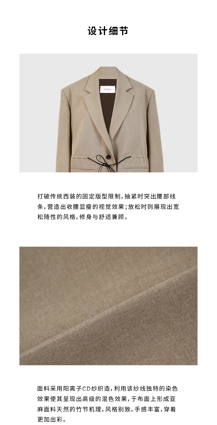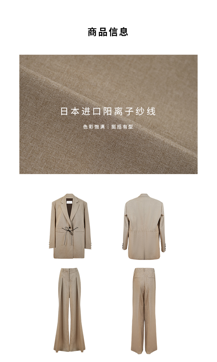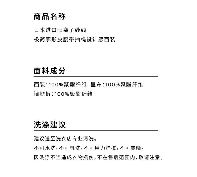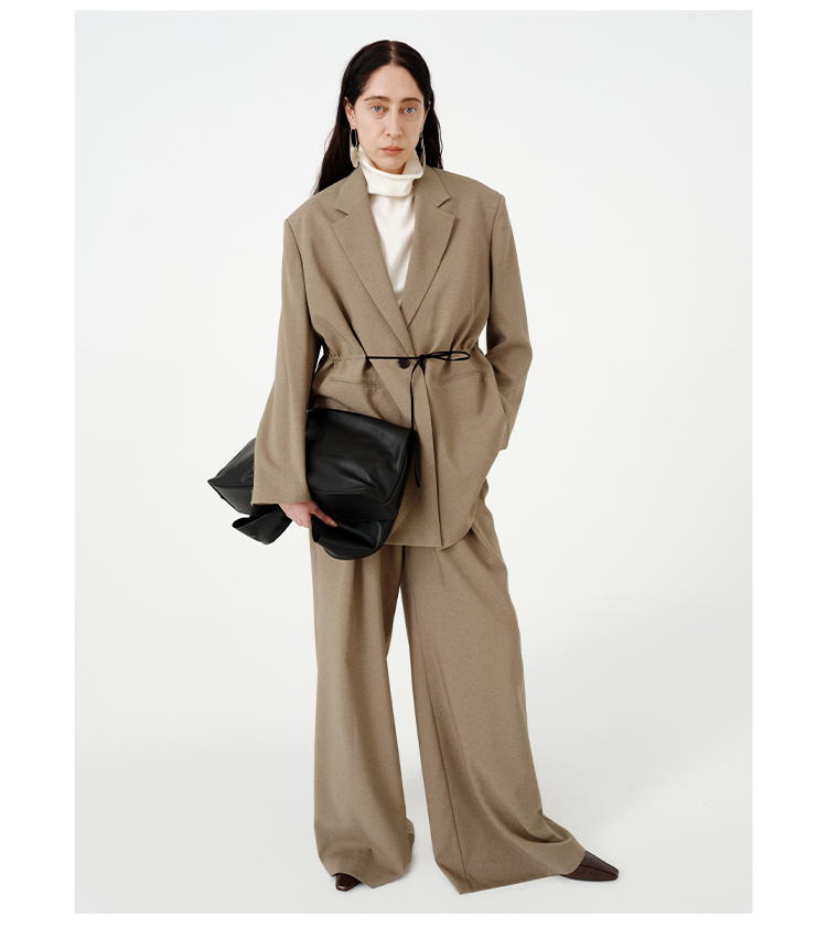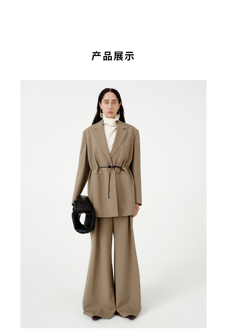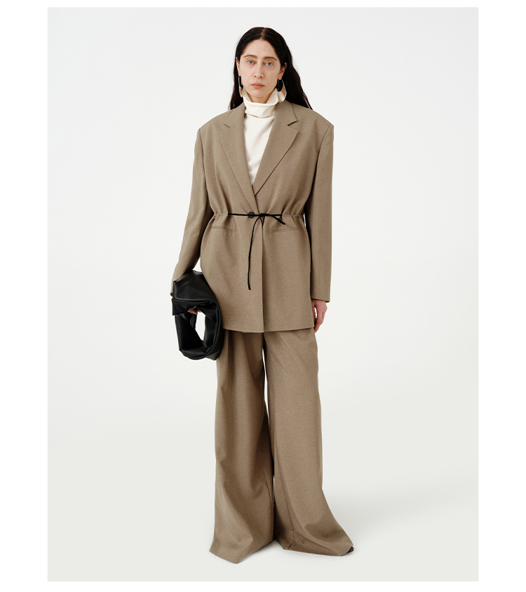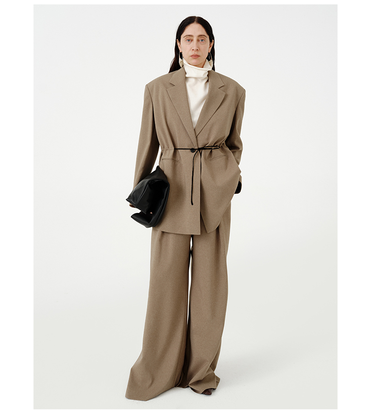 HIDEMI 日本进口阳离子纱线极简廓形皮腰带抽绳设计感西装套装