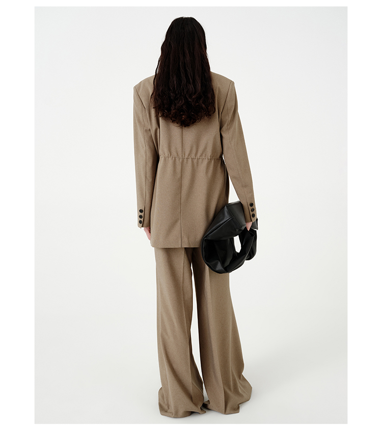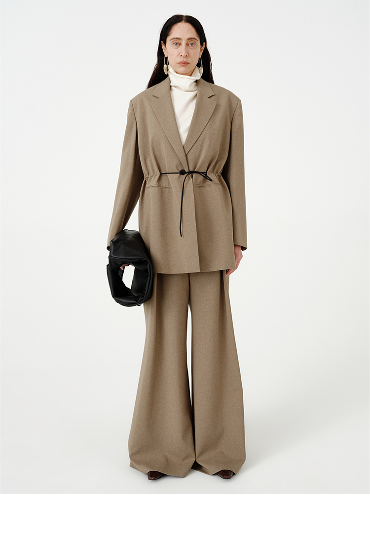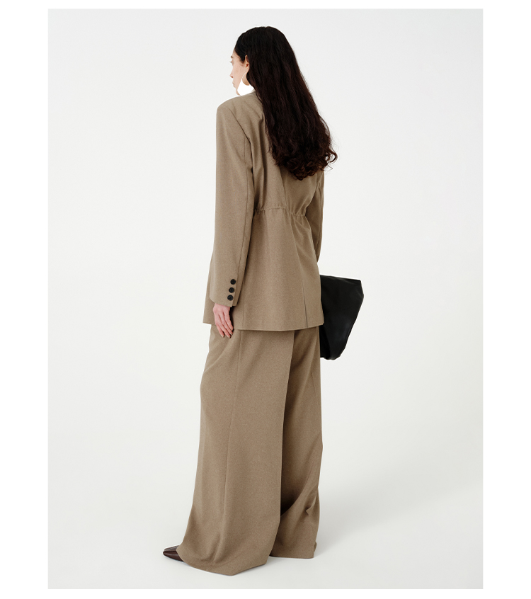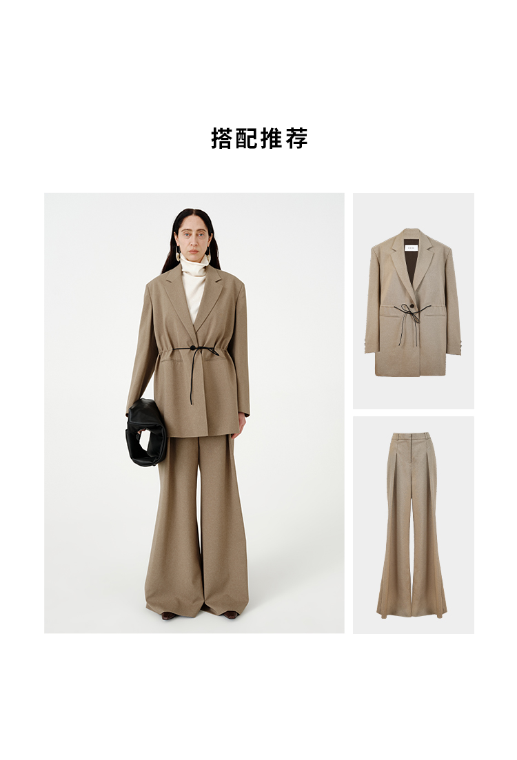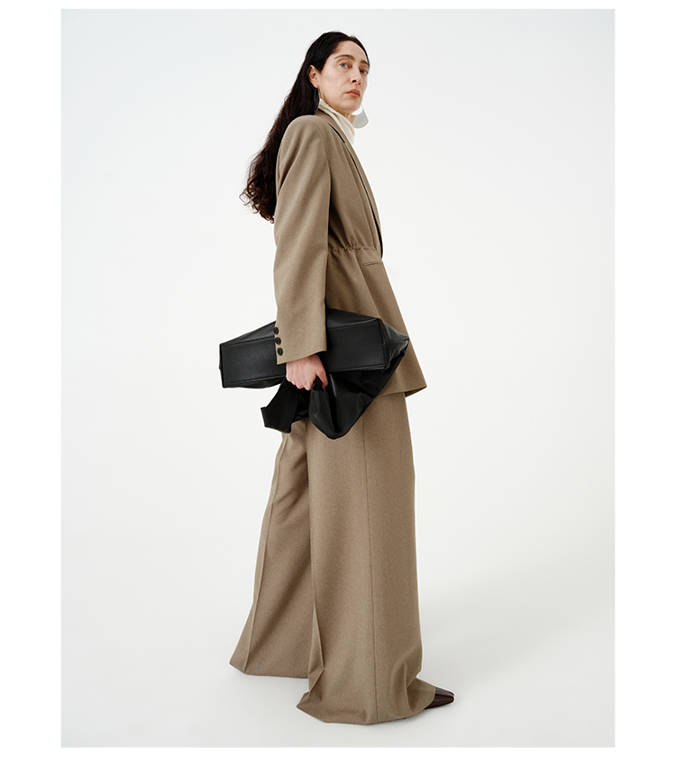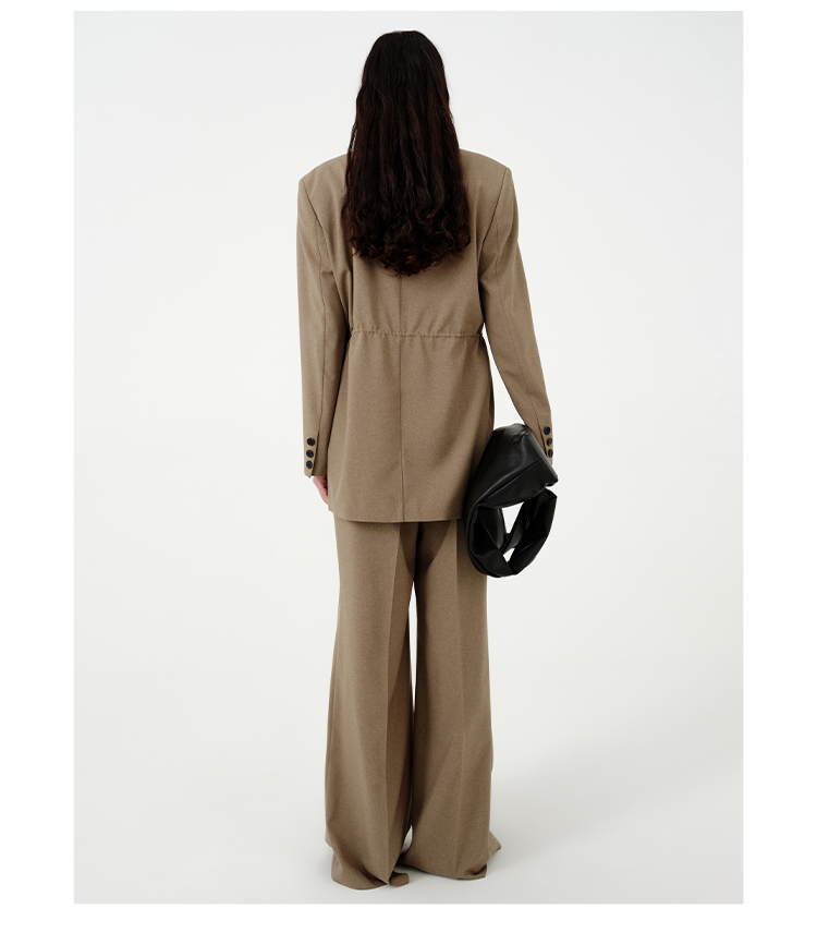 HIDEMI 日本进口阳离子纱线极简廓形皮腰带抽绳设计感西装套装