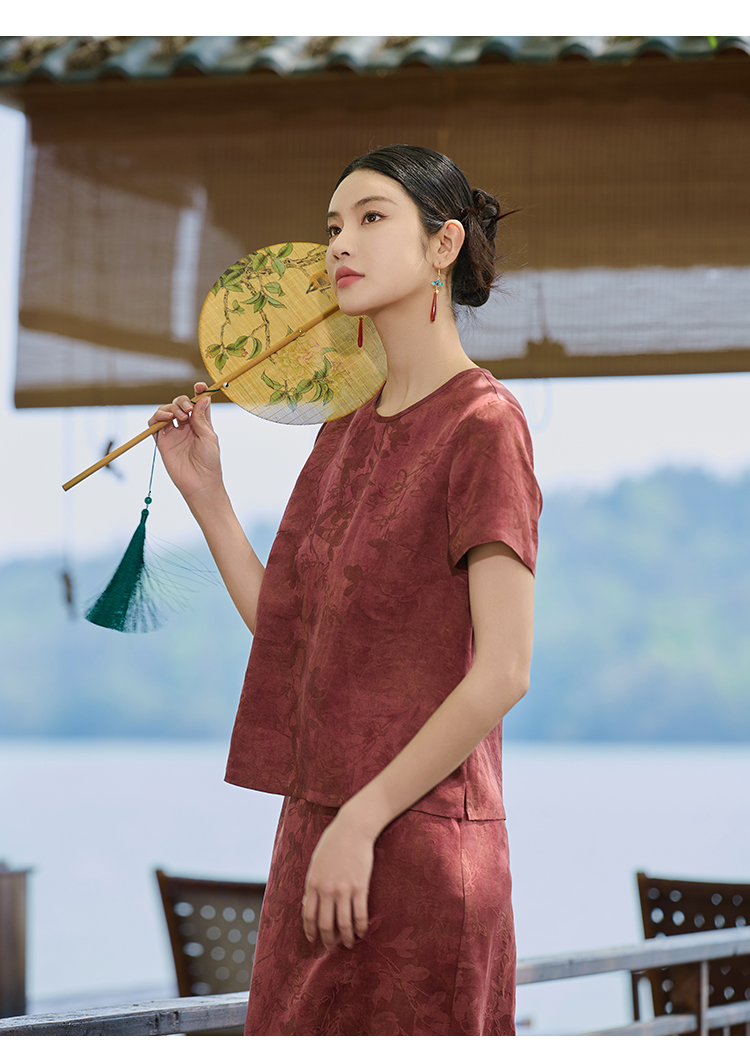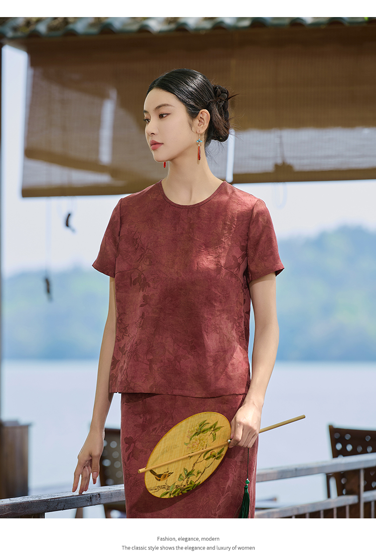 佐尔美夏季新款优雅新中式国风桑蚕丝莨绸衬衣女M52CS47