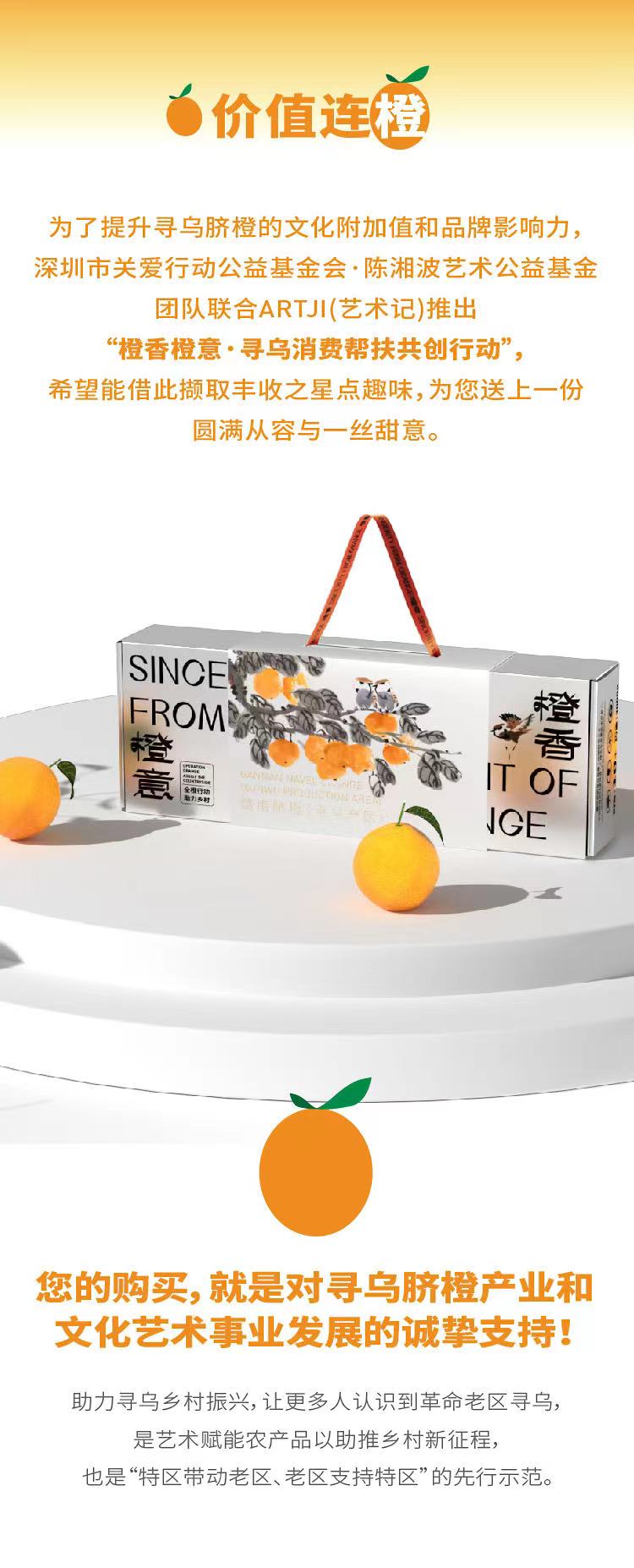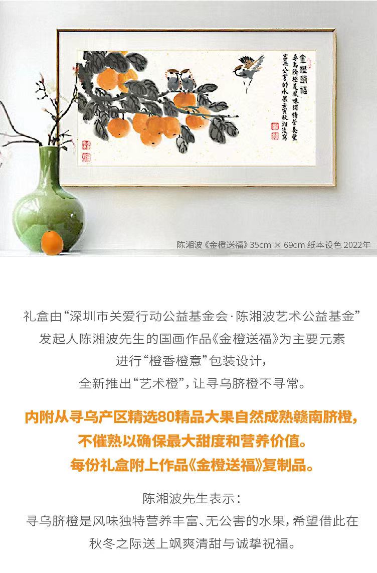 “橙香橙意”寻乌脐橙“艺术橙”文创礼盒+发起人陈湘波老师国画作品《金橙送福》高清复刻版画——深圳市关爱行动公益基金会,陈湘波艺术公益基金联合消费帮扶共创,全“橙”行动,助力乡村 | 一艺之间 优品推荐
