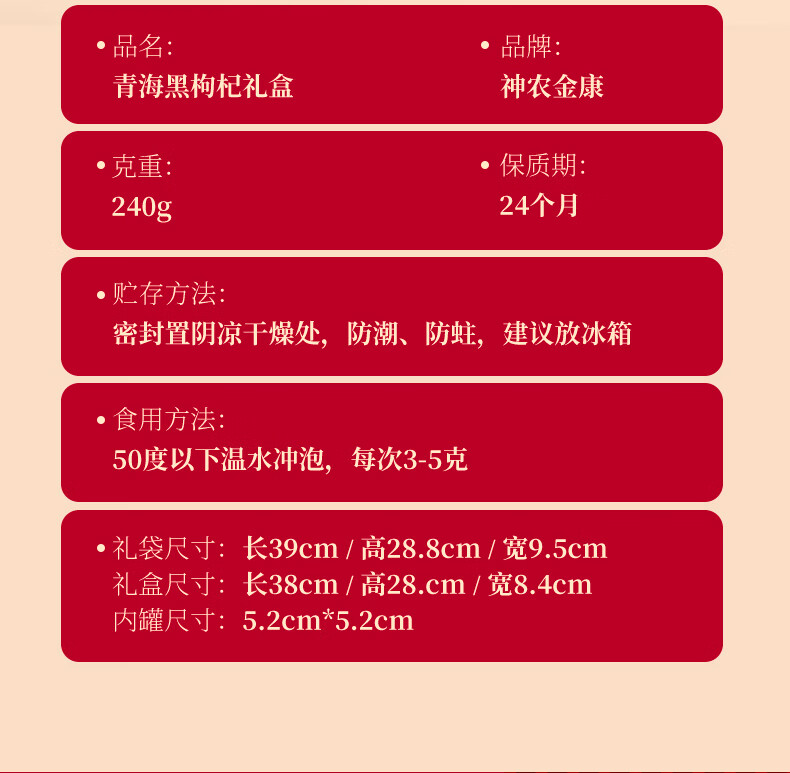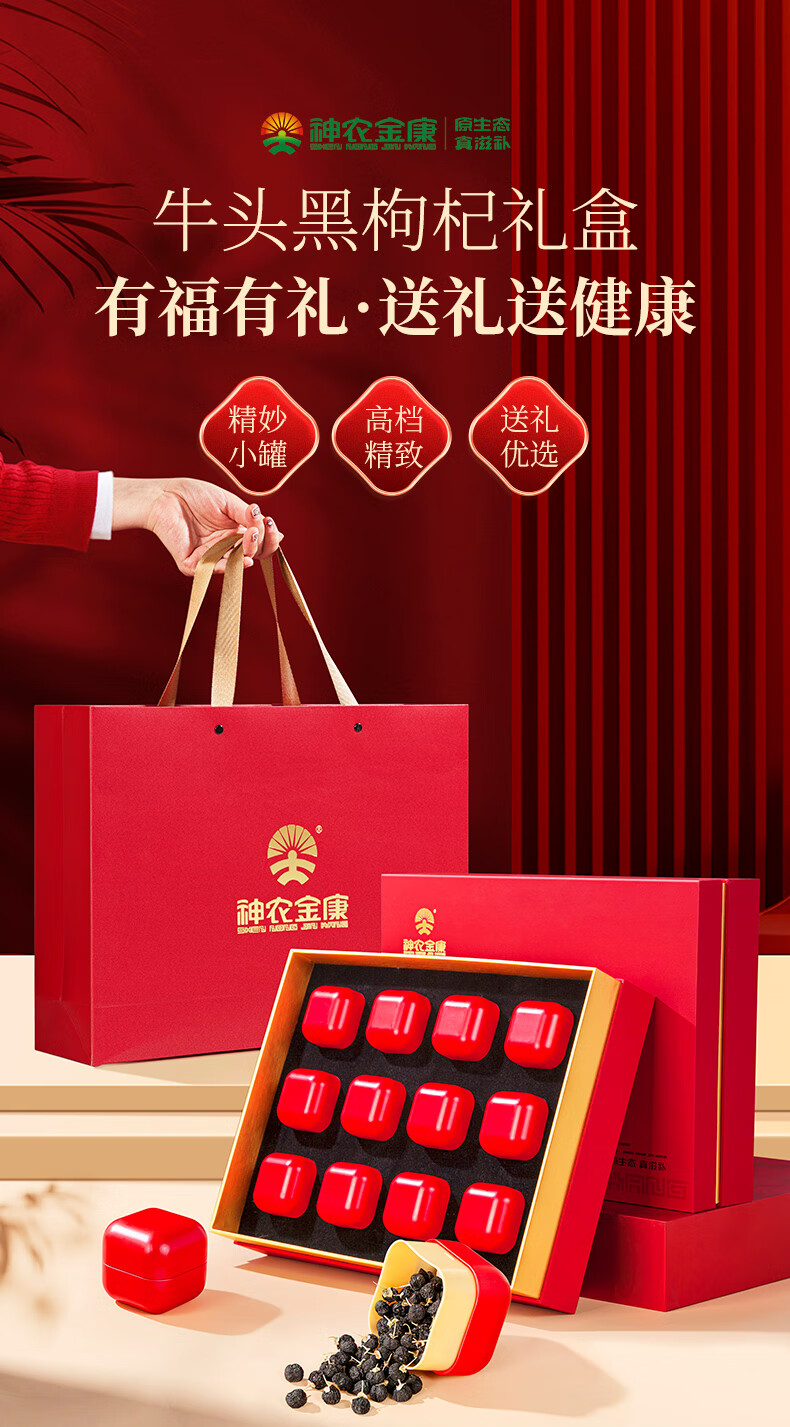 【礼盒】神农金康 黑枸杞礼盒240g 过年伴手礼 新中式滋补礼 原生态真滋补 喝护家人健康