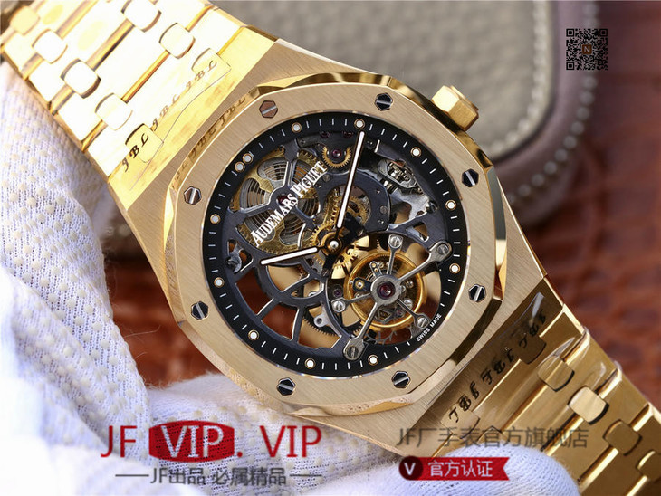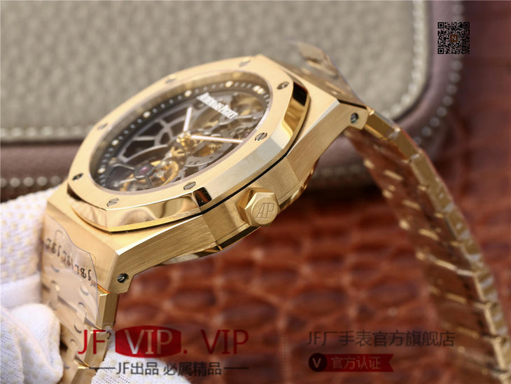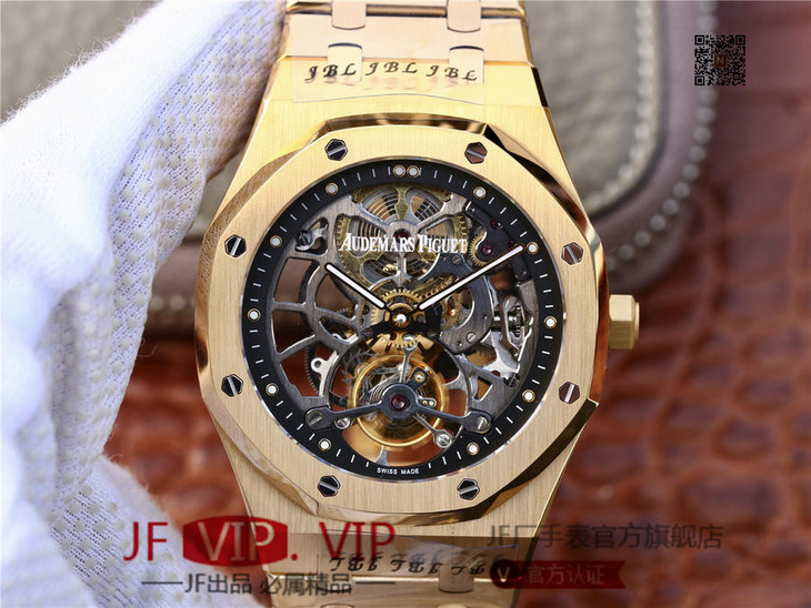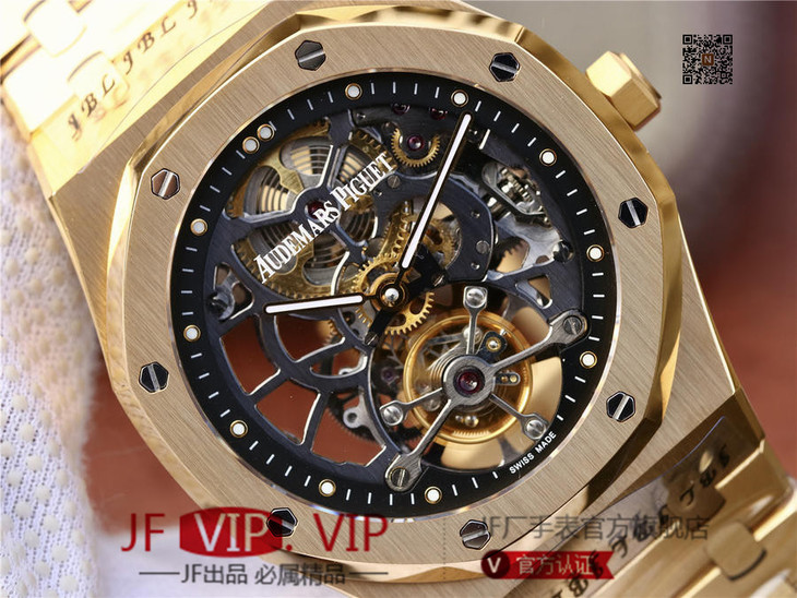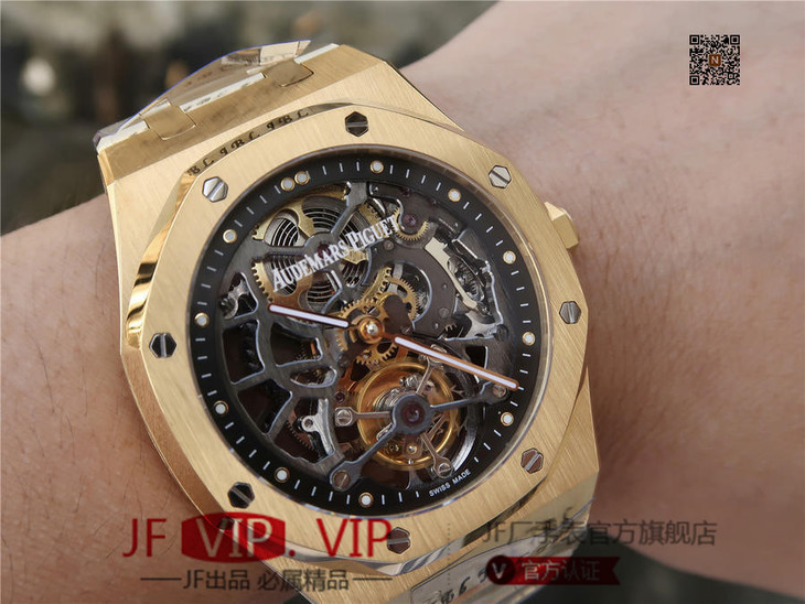 爱彼V2升级版皇家橡树26518真陀飞轮男士腕表。这是一项对精度密要求极其严苛的高级制表工艺,丝毫分差都可能会影响机芯的走时精度或防震效果