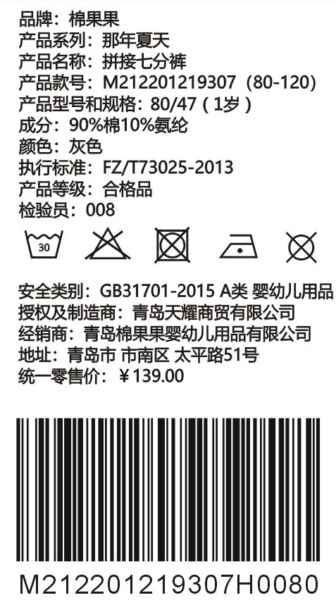 棉果果夏季男童拼接七分裤M212201219307