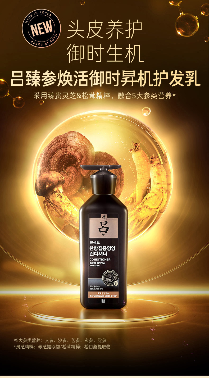 吕Ryo黑吕护发素奢养头皮滋养强韧灵芝松茸护发乳400ml