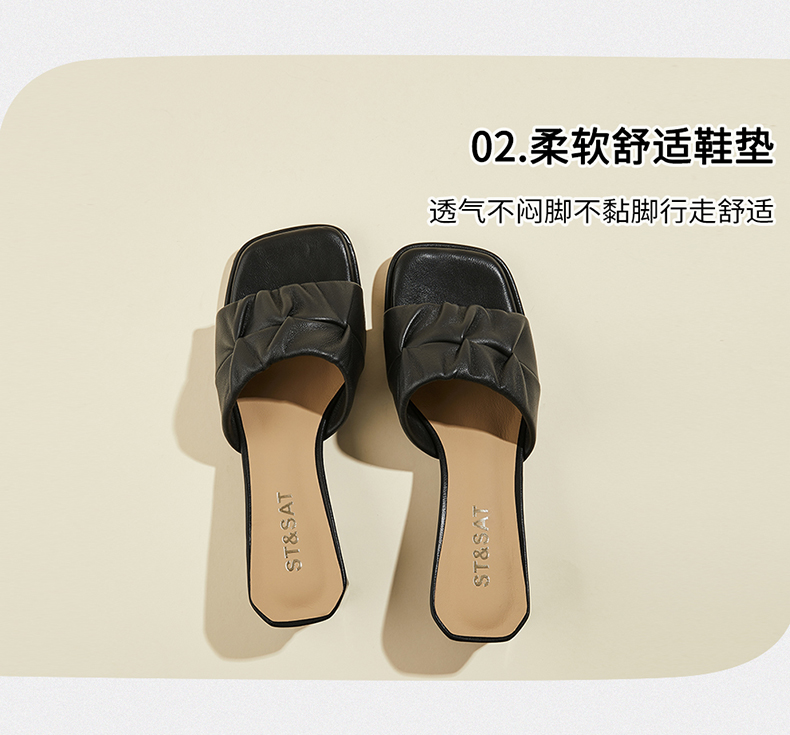 星期六极简方头褶皱柔软沙发拖SSC211000Q