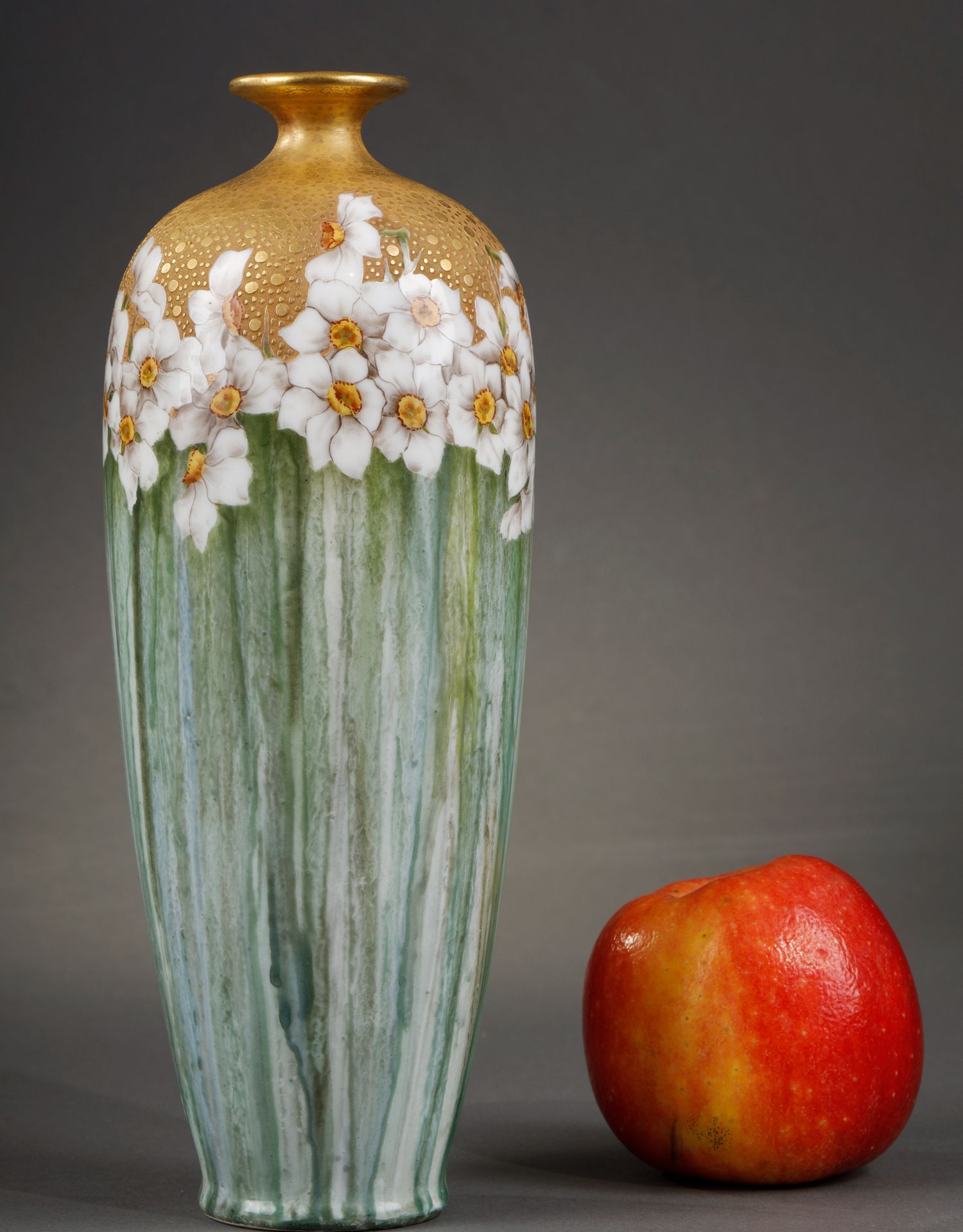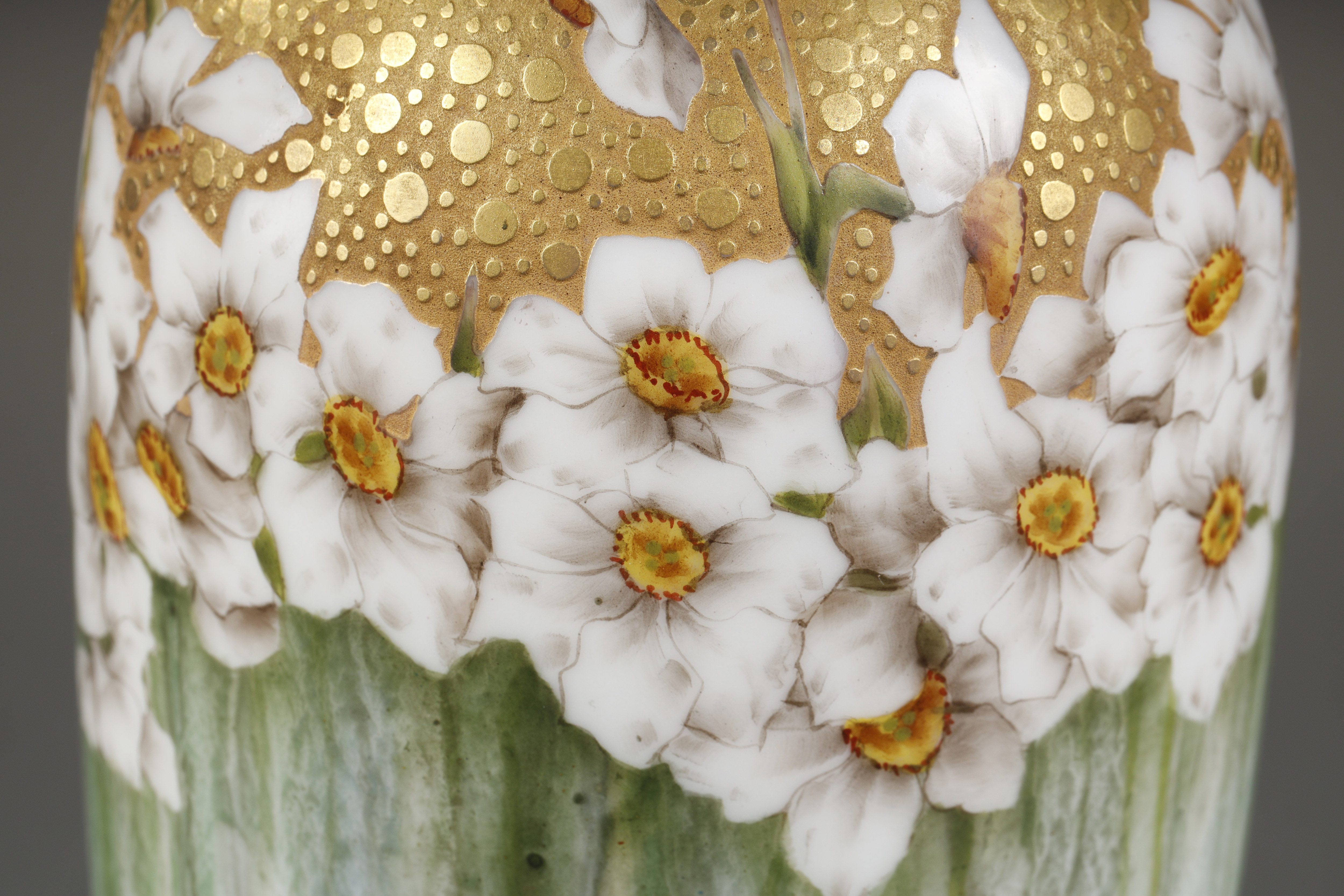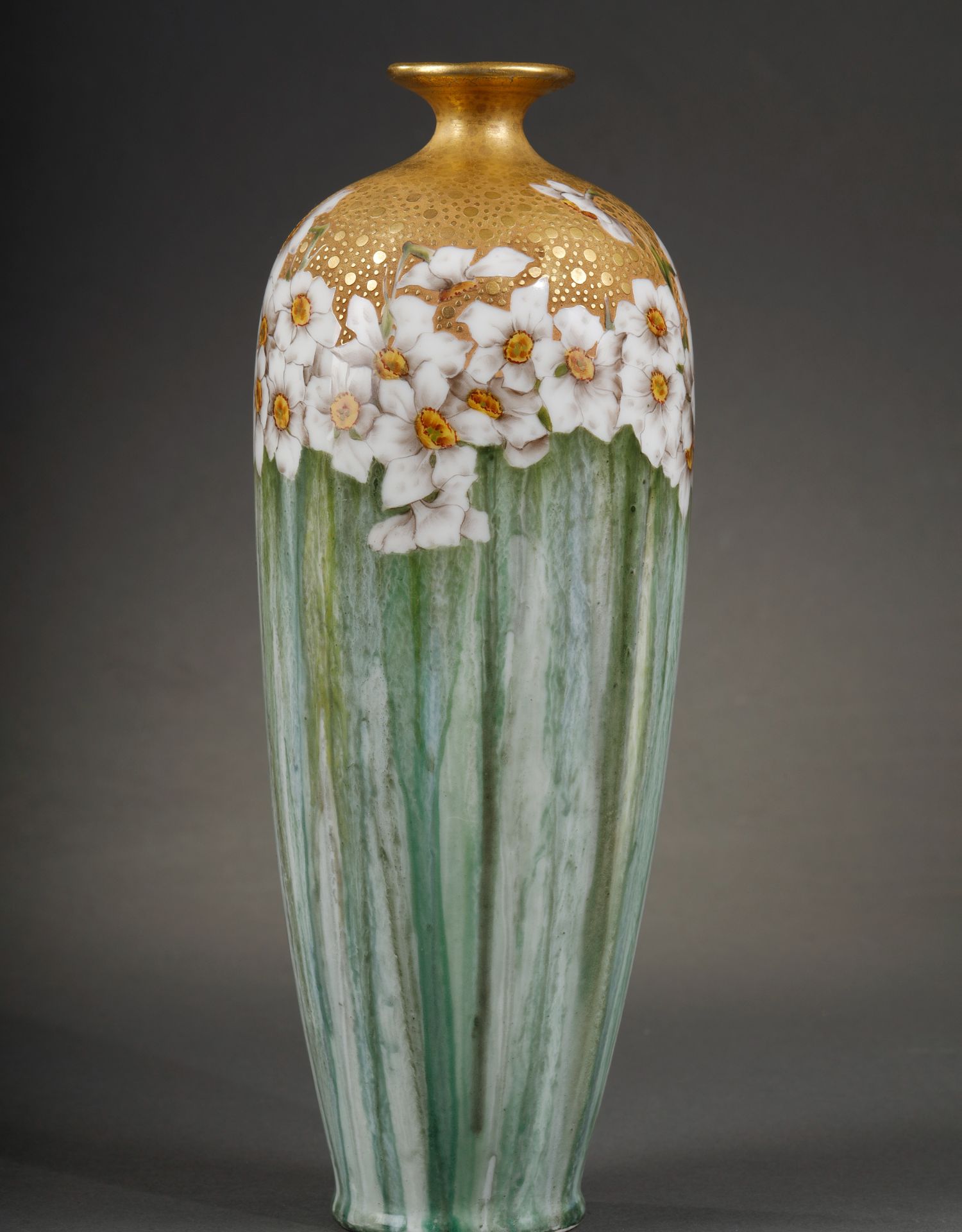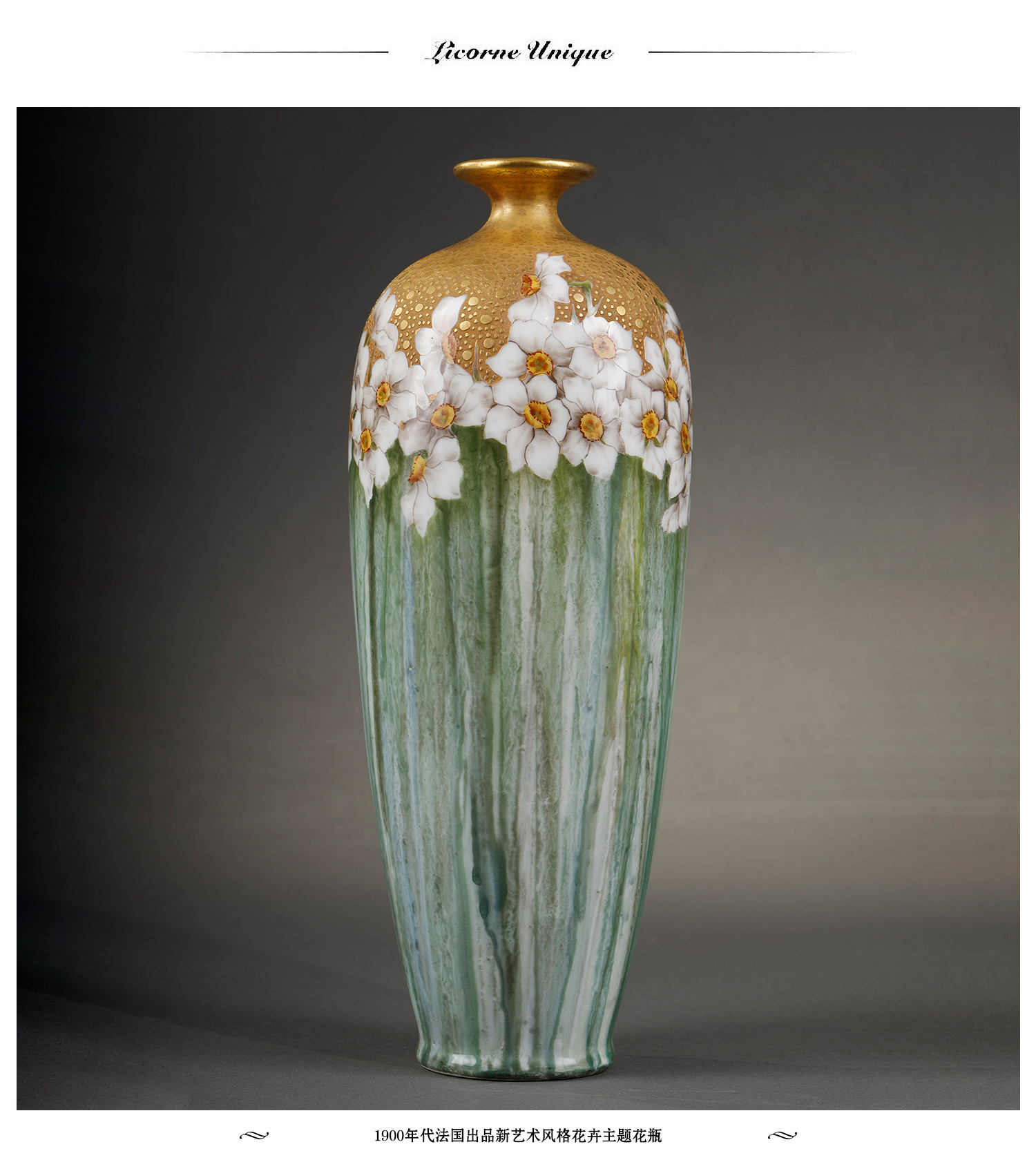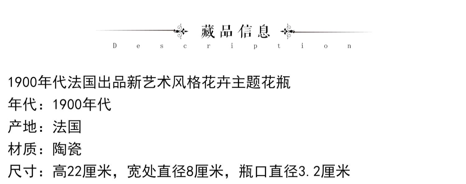 独角鹿西洋古董瓷器1900年代法国出品新艺术风格花卉主题花瓶