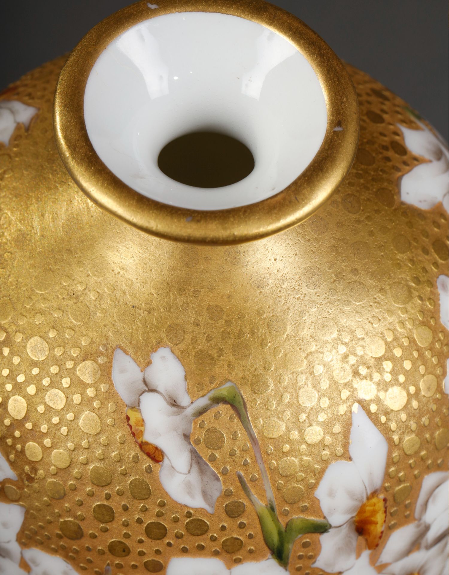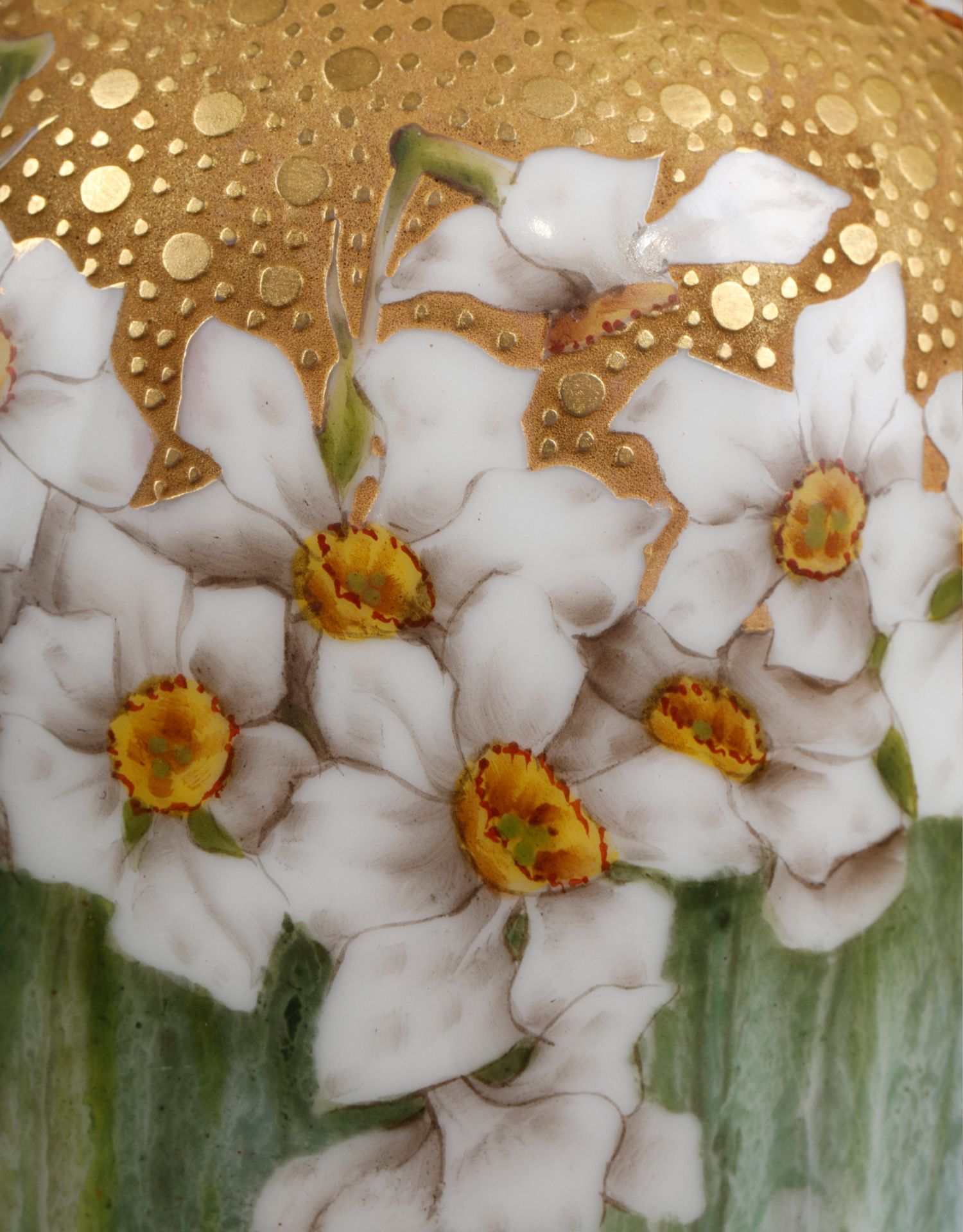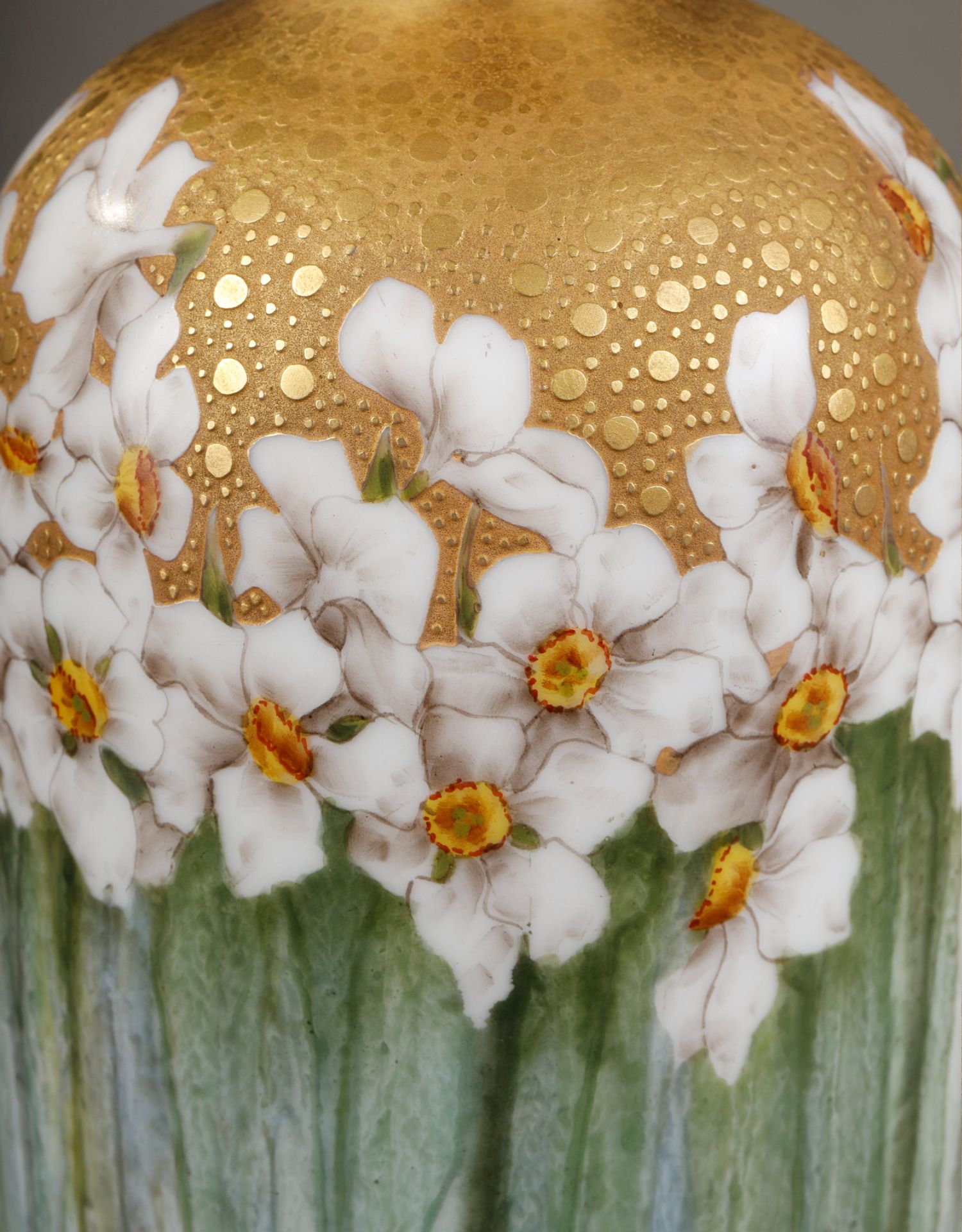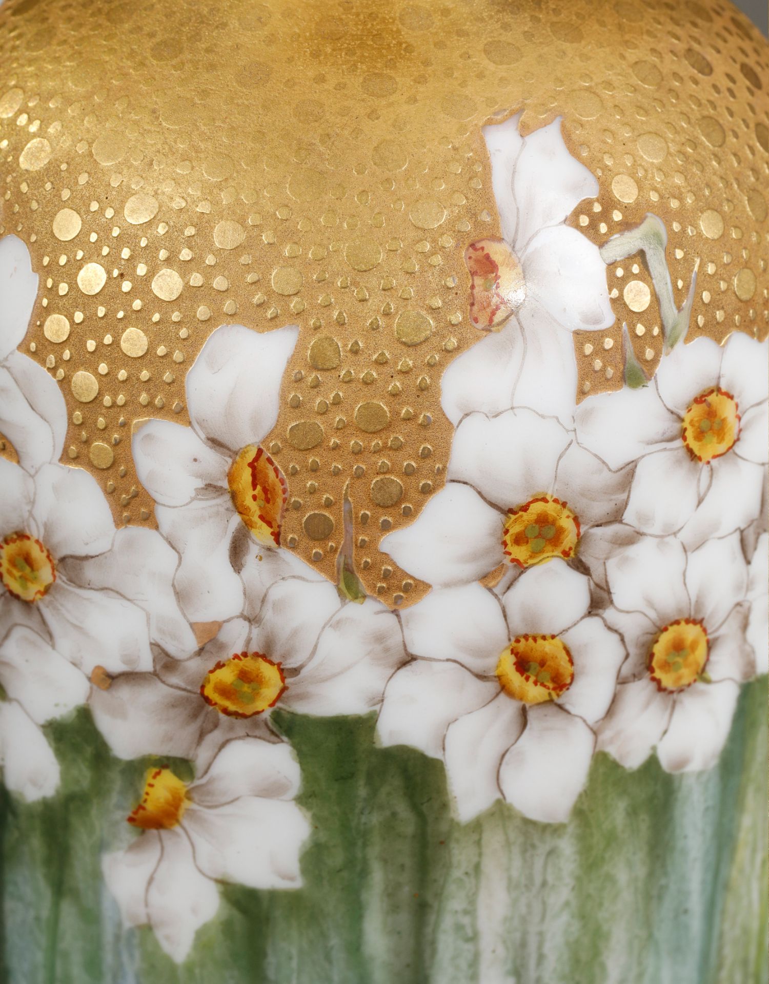 独角鹿西洋古董瓷器1900年代法国出品新艺术风格花卉主题花瓶